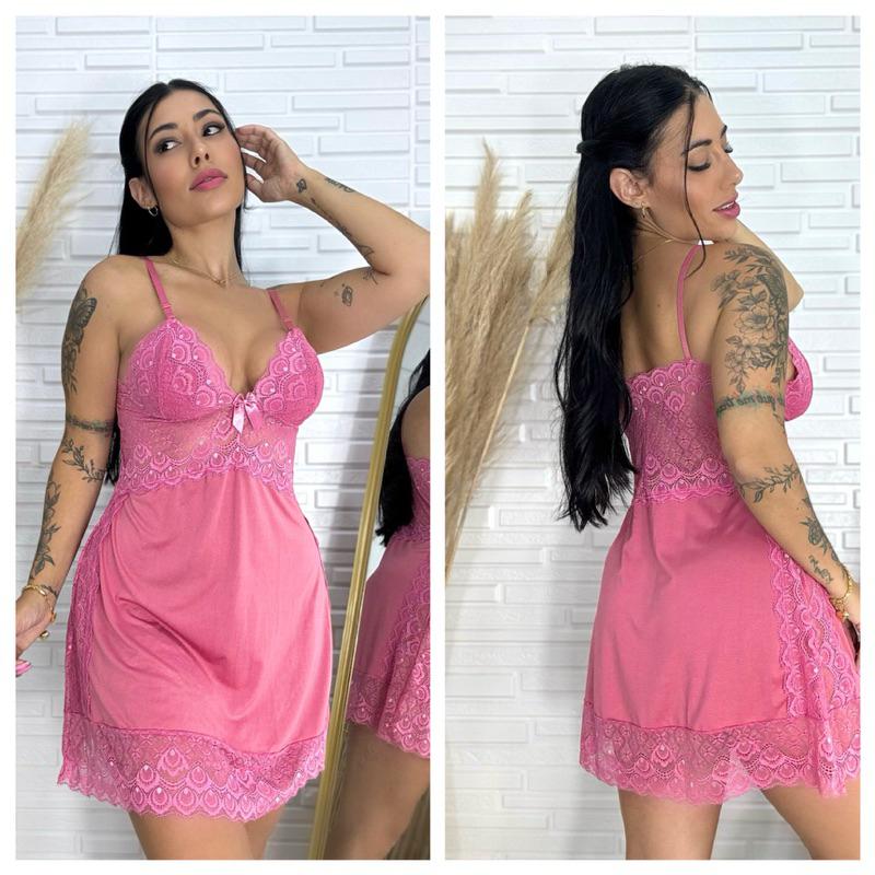 Camisola Femina + Dettalhes Em Renda+ Sem Bojo+ Pijama Curto+ Linha Noite