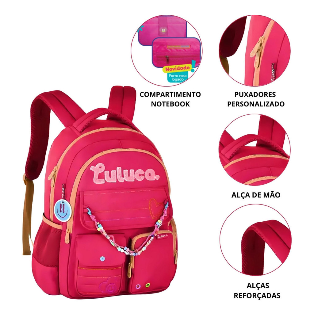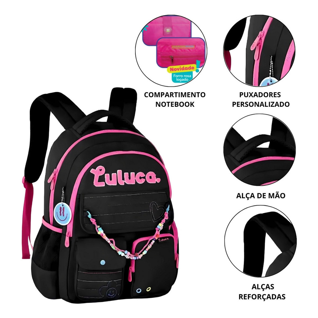 Mochila Luluca Costa Grande Miçanga Notebook Bolsos Juvenil