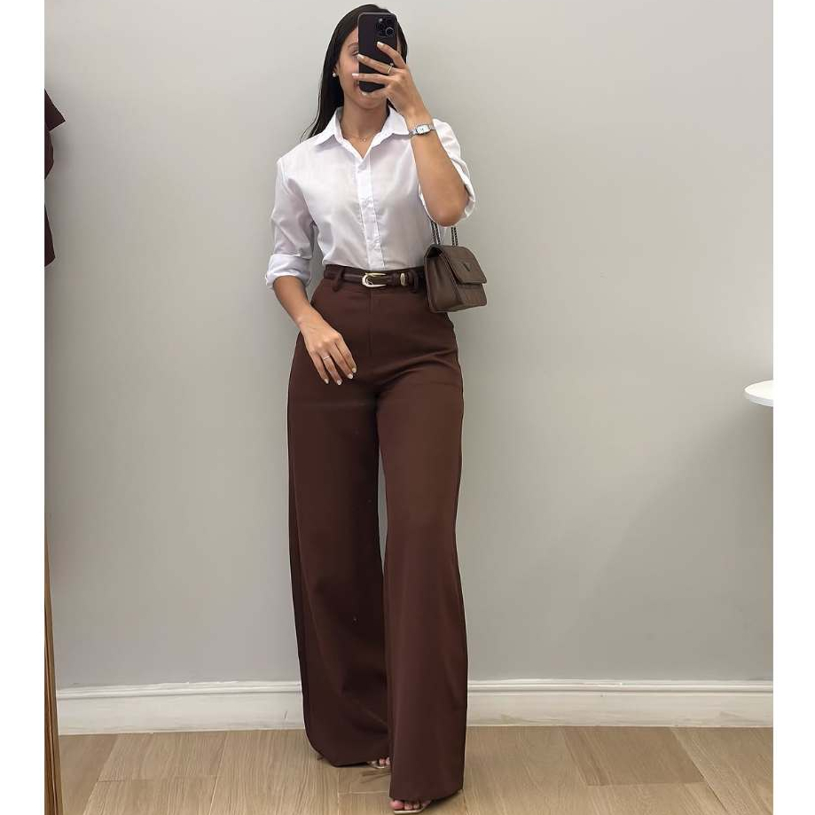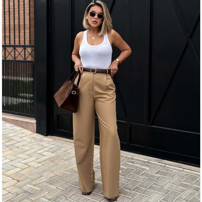Calça Pantalona Alfaiataria Premium Com Bolso Cintura Alta Wide Leg Calça Moda Social Elegante