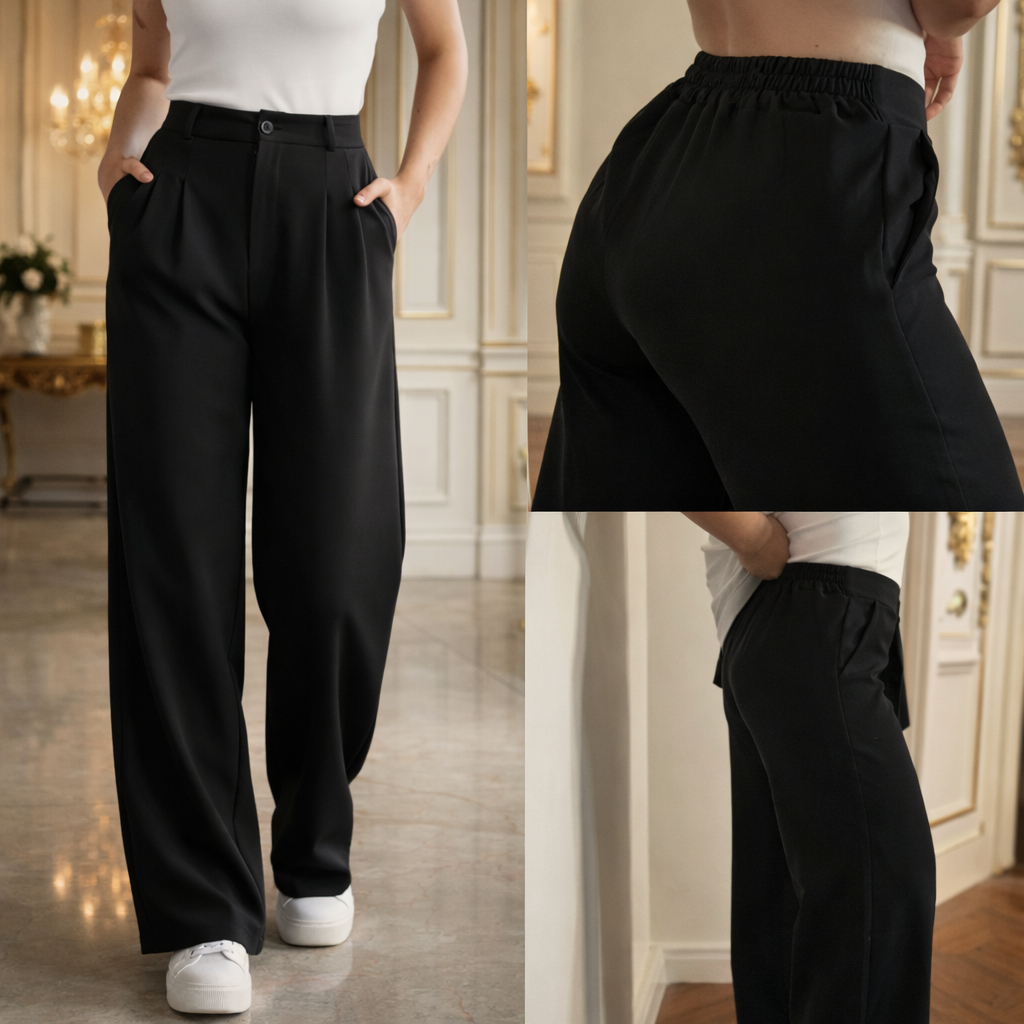 Calça Pantalona Feminina Alfaiataria Premium COM ELÁSTICO NA CINTURA PROMOÇÃO Wide Led