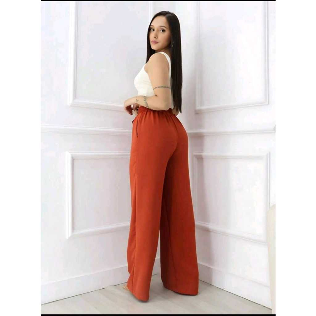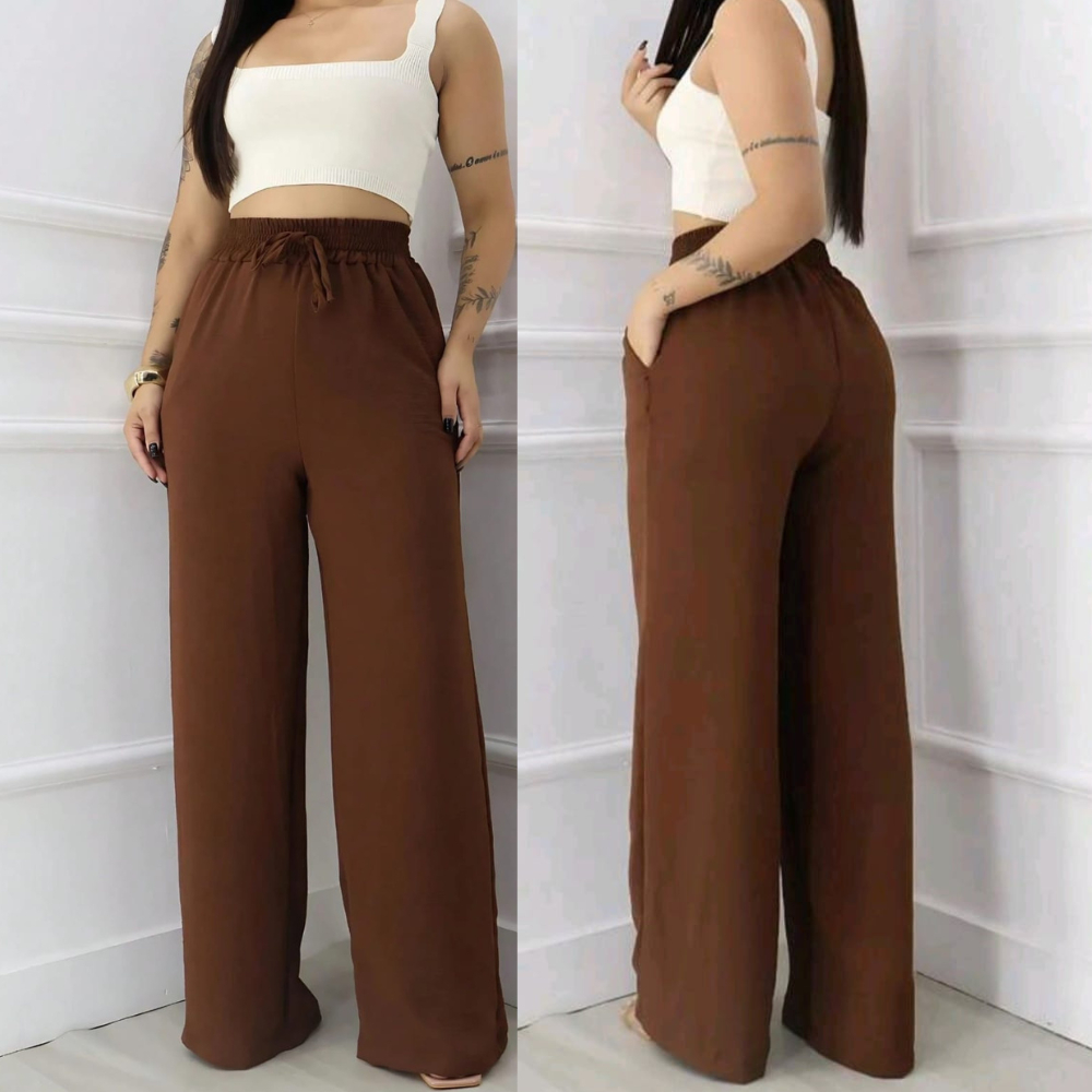 Calça Pantalona Feminina Cintura Alta Bolsos Estilo Conforto Elegância Calça Pantalona Feminina Duna