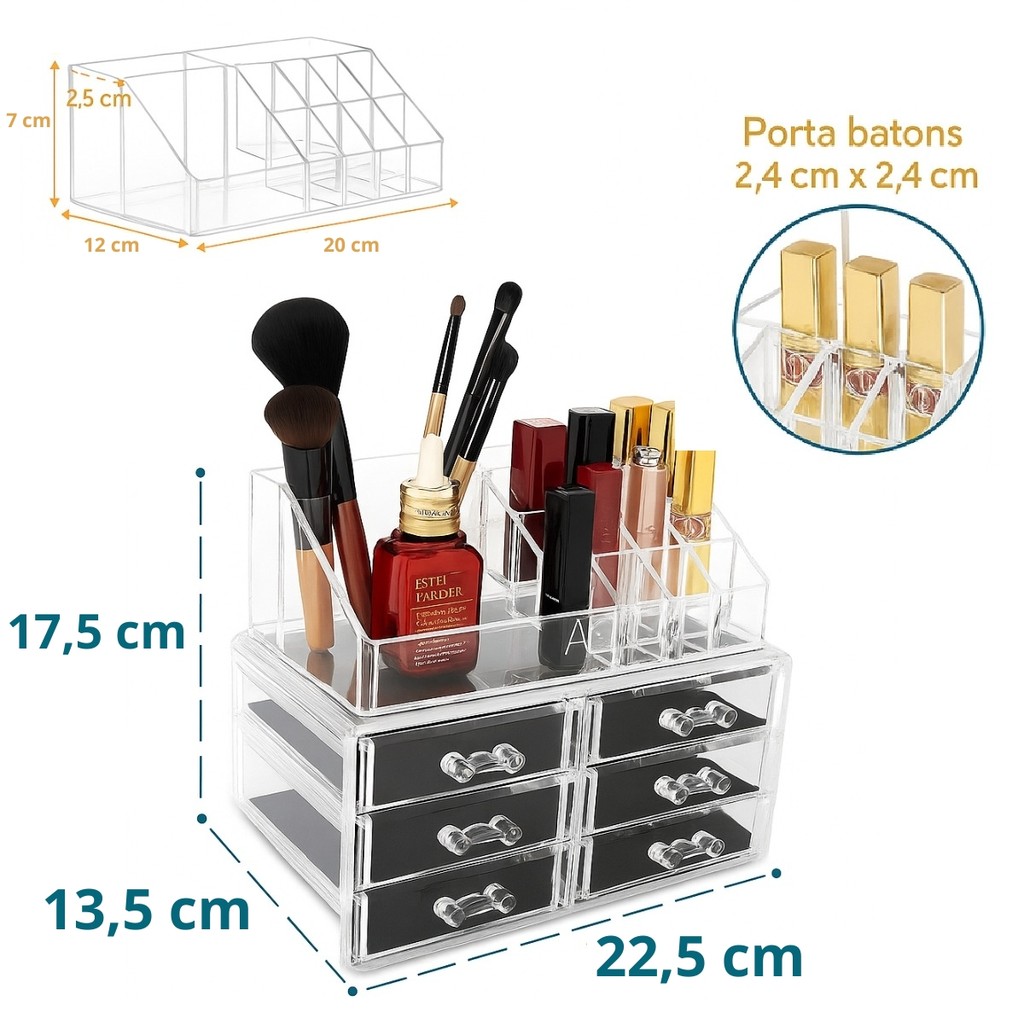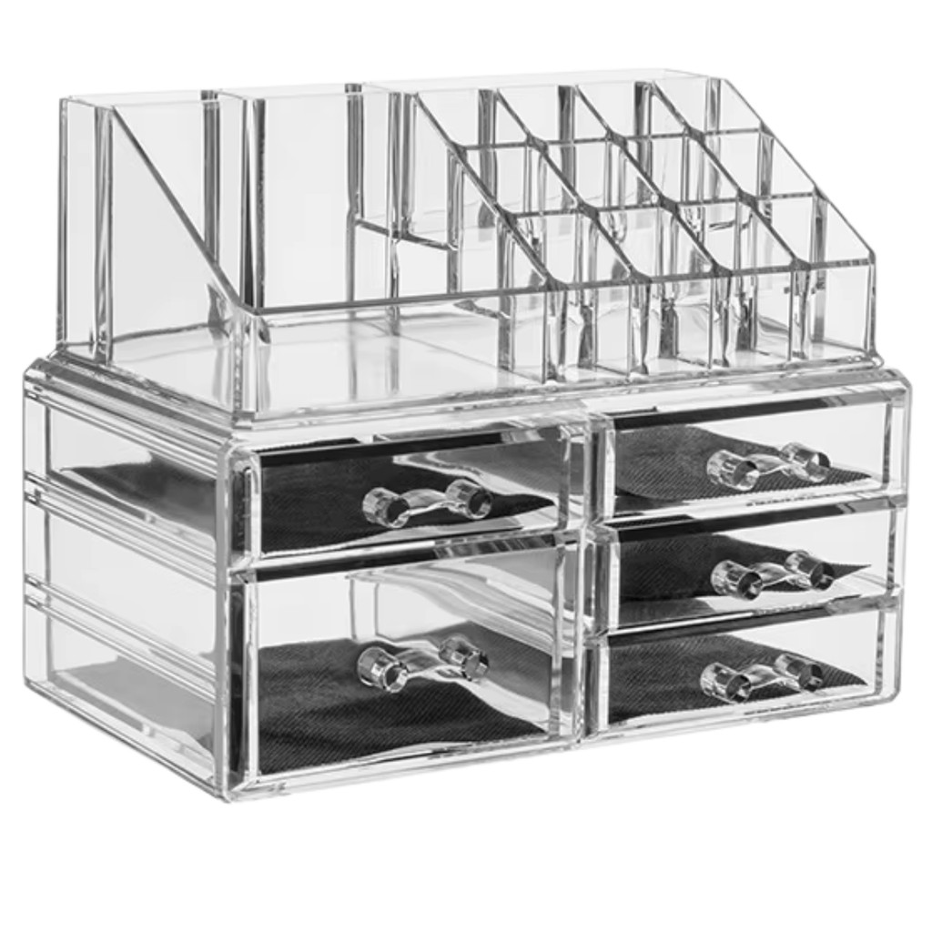 Organizador de Maquiagem Acrílico 5 Gavetas Porta Cosméticos Joias Batom Skincare Transparente
