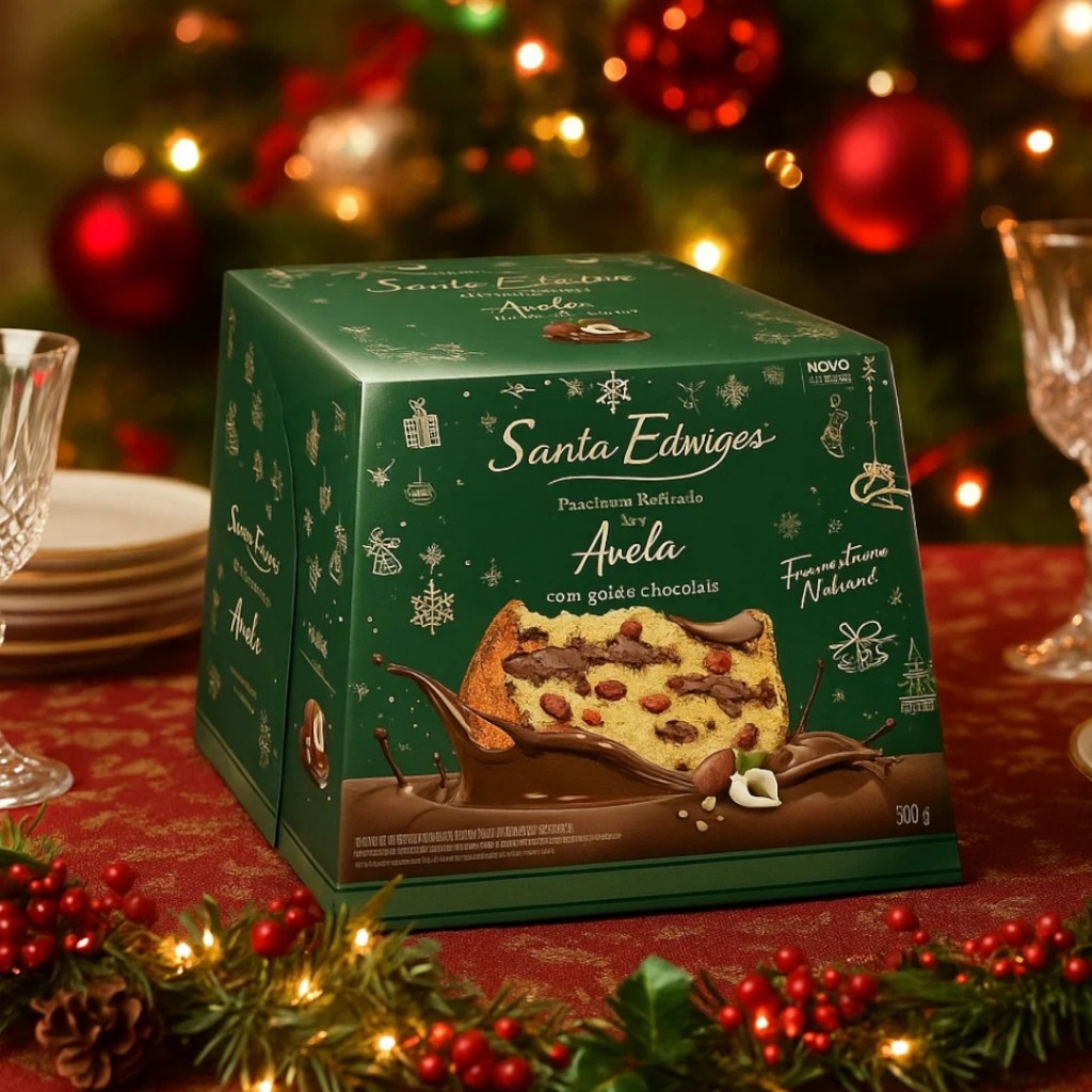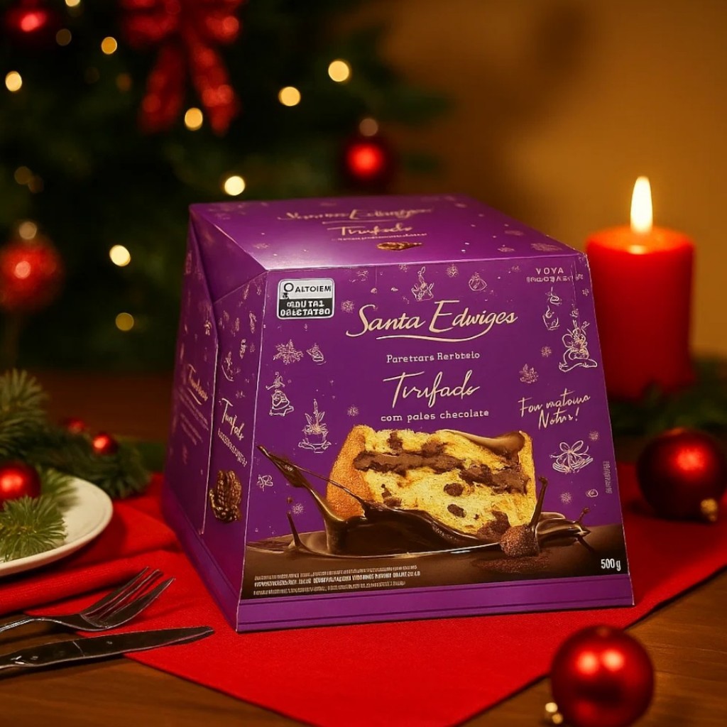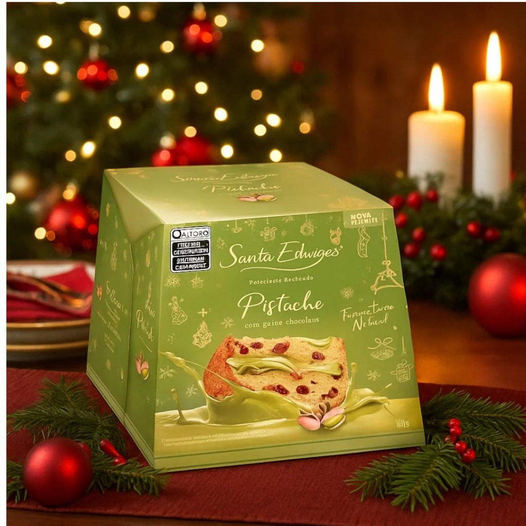 Panetone Recheado Premium Santa Edwiges 500g Avelã Pistache Nozes/Doce Leite Trufado/Brigadeiro