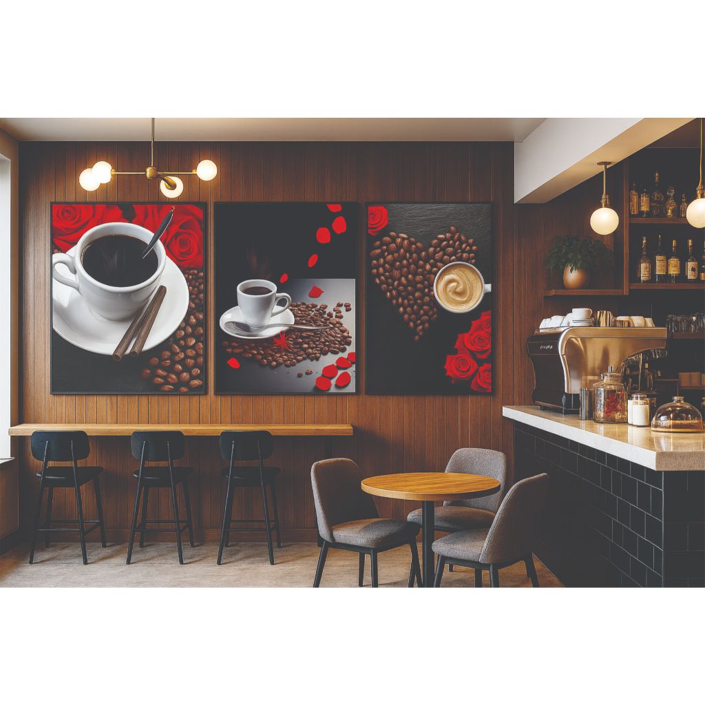 Quadro decorativo Kit cantinho do café 3 tela para lanchonete padaria cafeteria quadro cofee cozinha