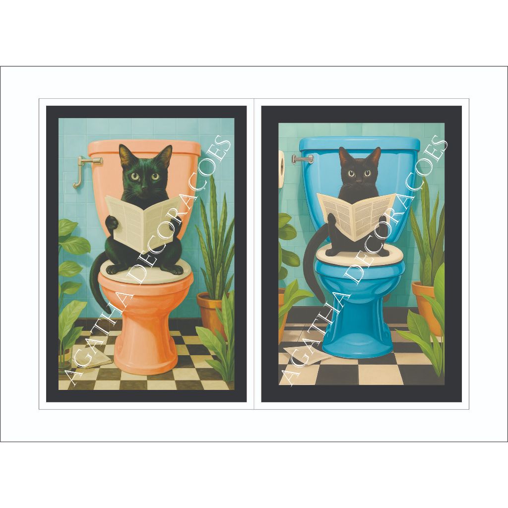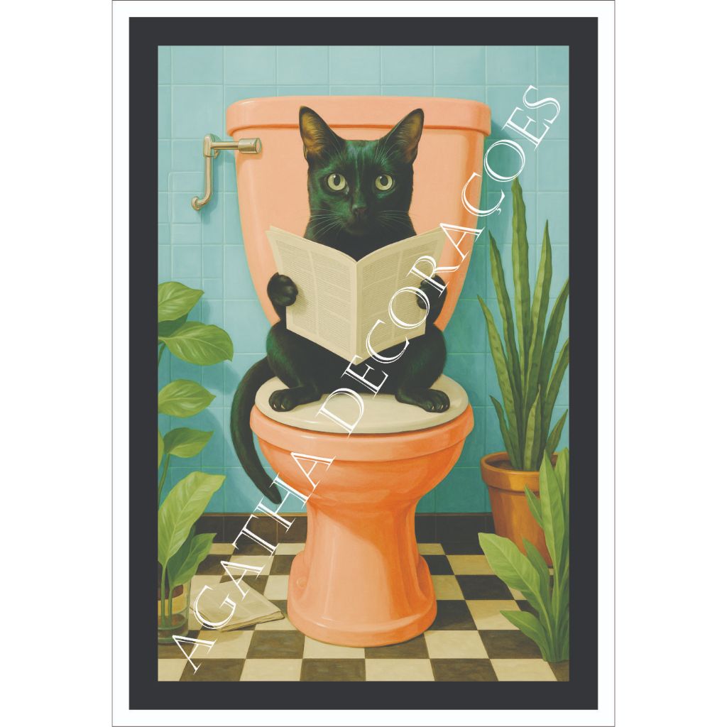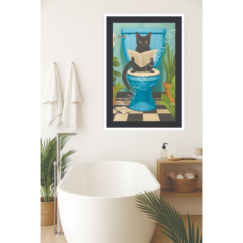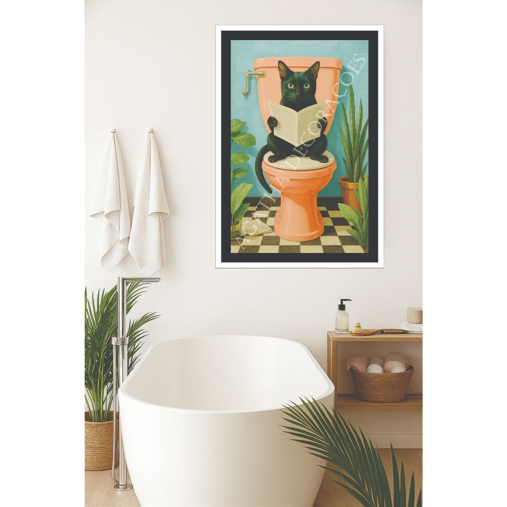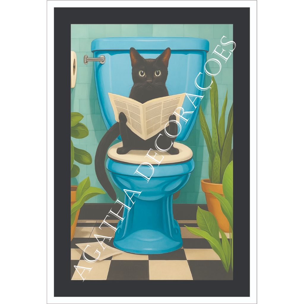 Quadro Gato preto banheiro 1 peça quadro gato decoração pet shop consultório veterinário gatos
