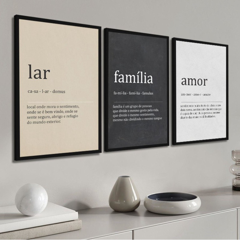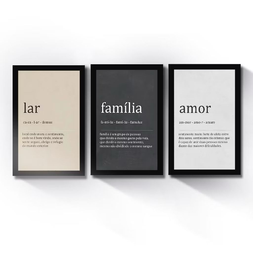 Kit 3 Quadros Decorativos Frases Lar Família Amor Mosaico Casa Sala Quarto Escritório Presente