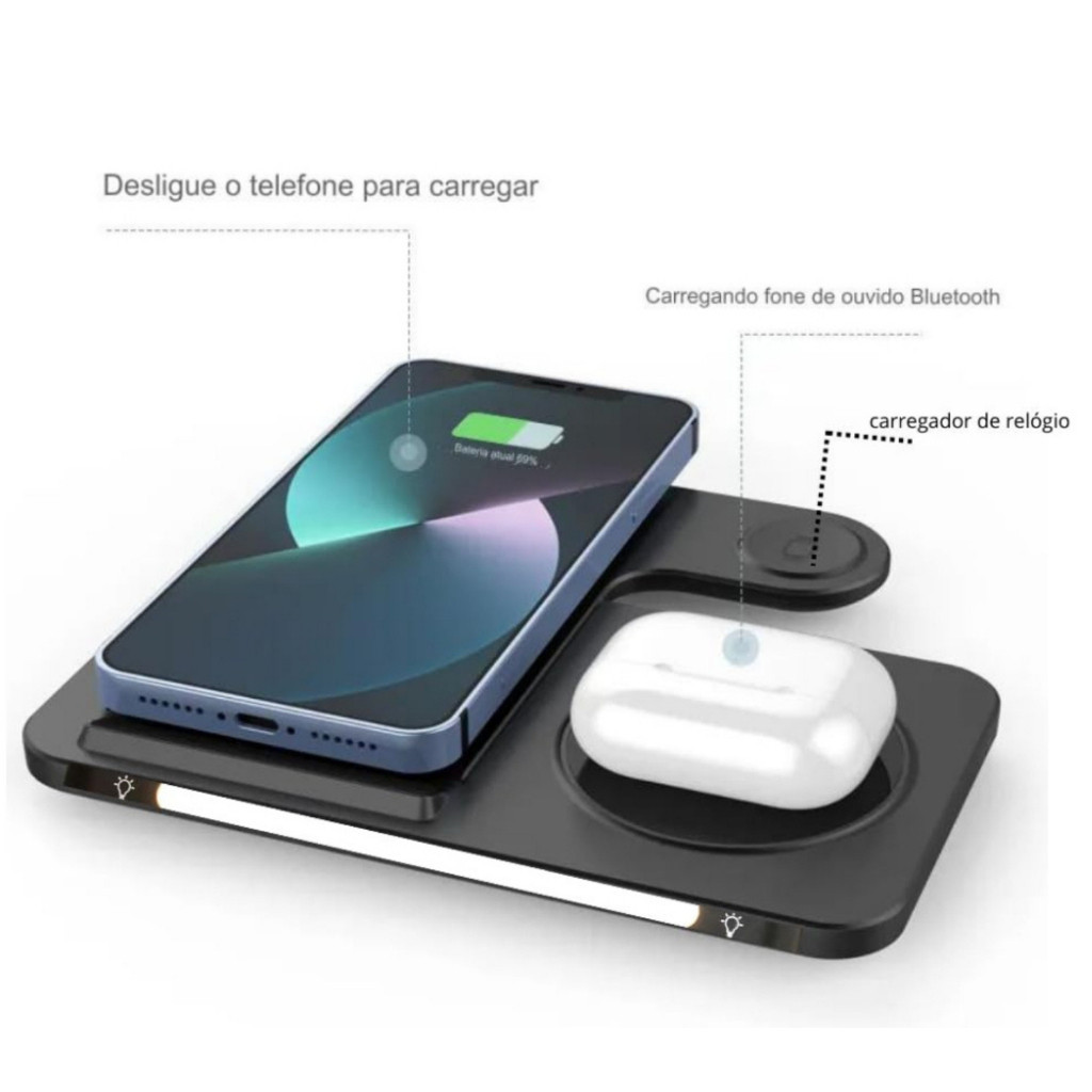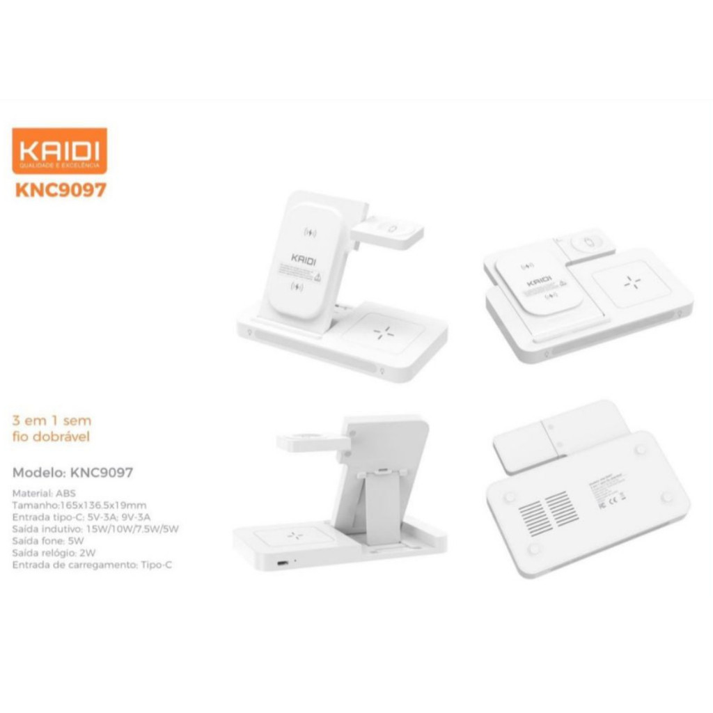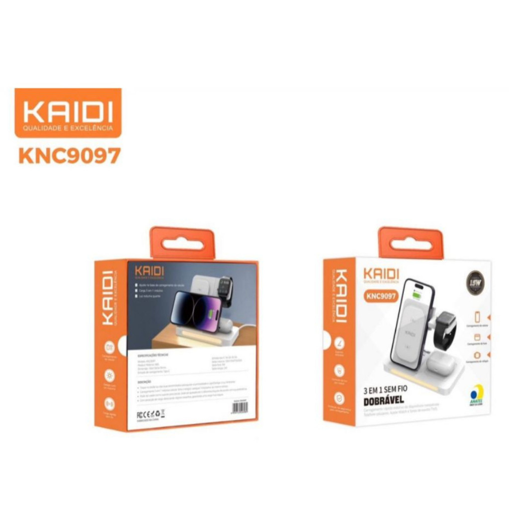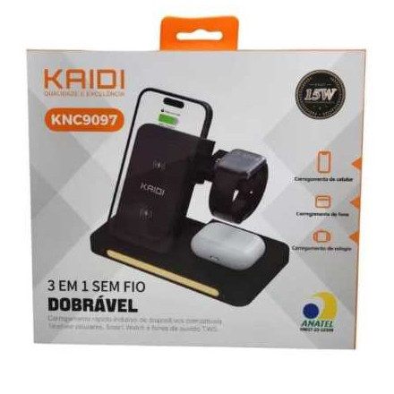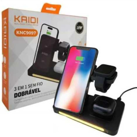 Carregador Indução Sem Fio 3 Em 1 Dock Station P/ Watch AirpodS Kaidi KNC-9097
