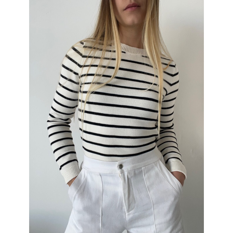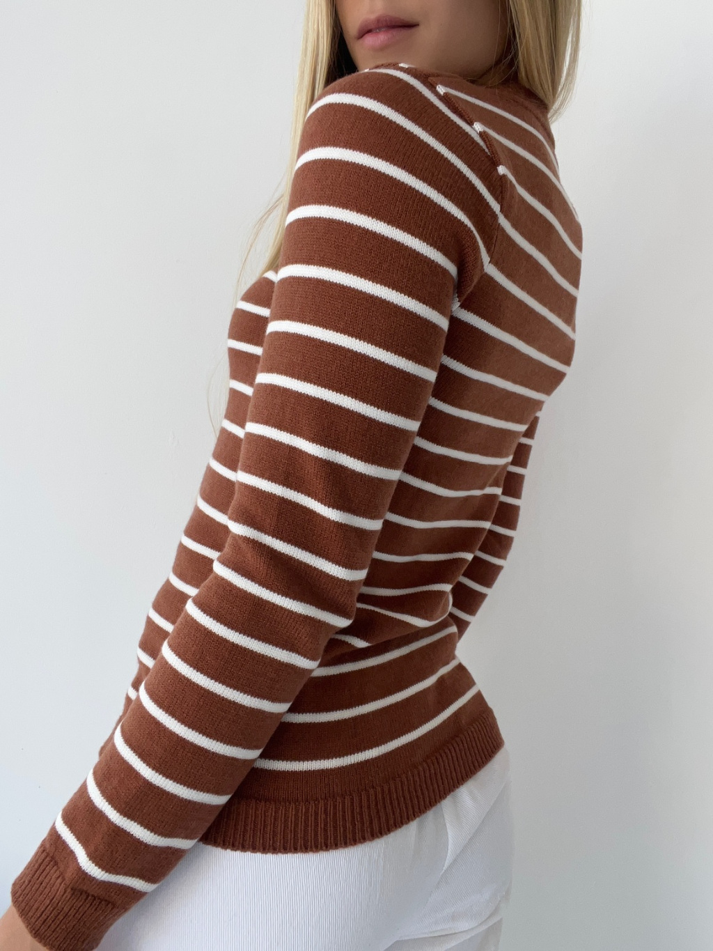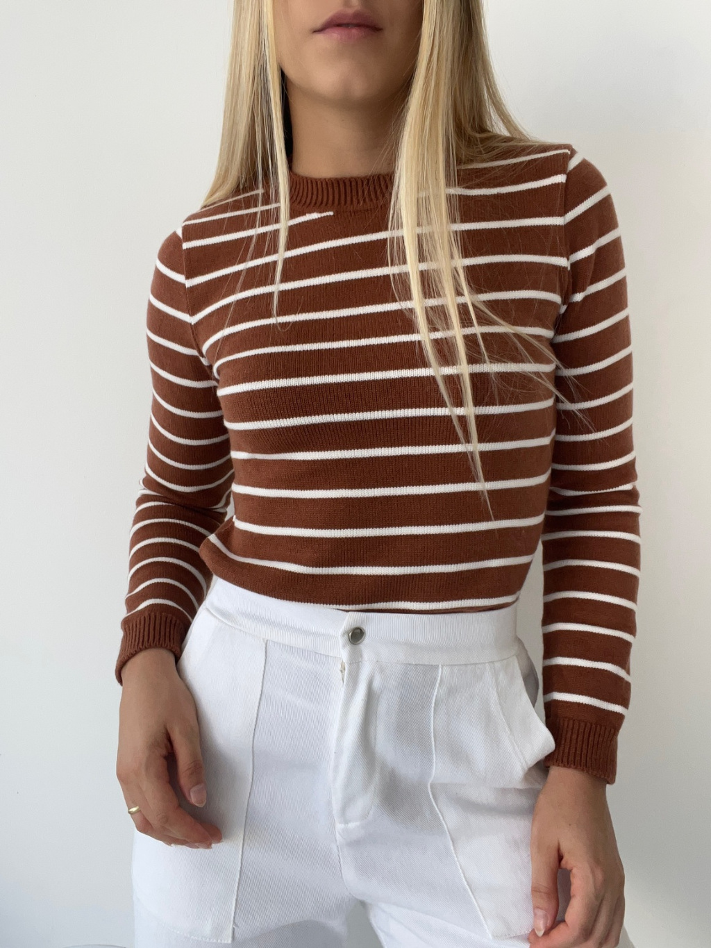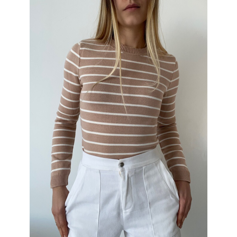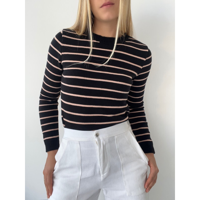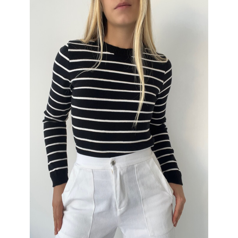 Blusa Tricot Listrada Moda Inverno Tricô Modal Listras Gola Redonda