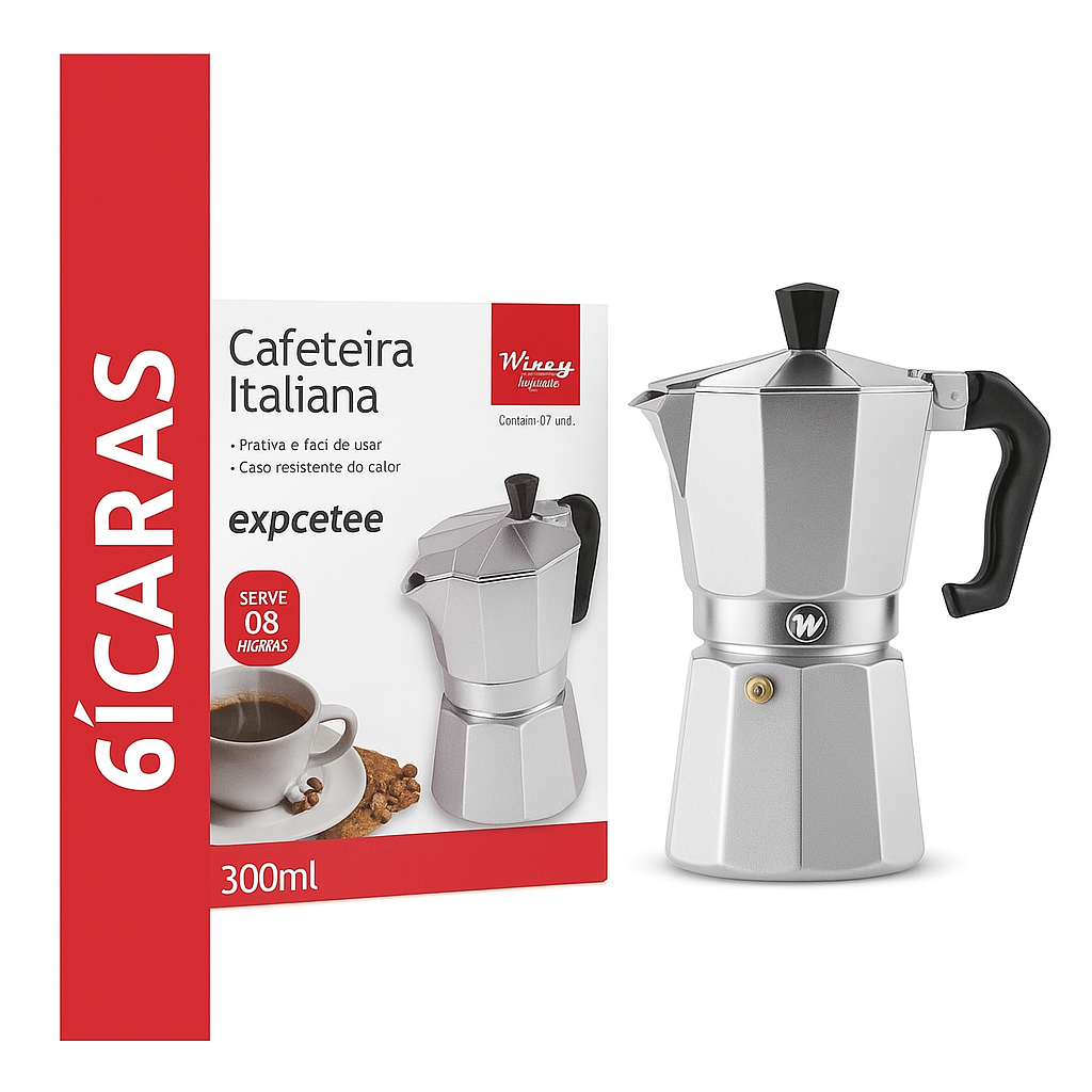 Cafeteira Italiana Expresso 6 ou 9 Xícaras Alumínio Wincy