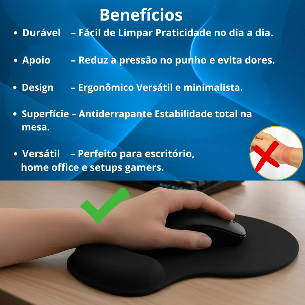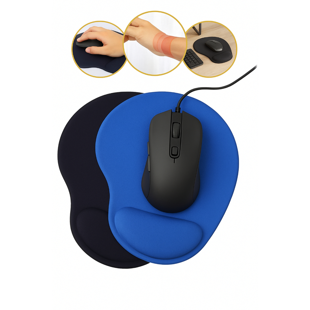 Mouse Pad Ergonômico Com Apoio de Punho Gamer Pulso Almofada Confortável Preto Azul