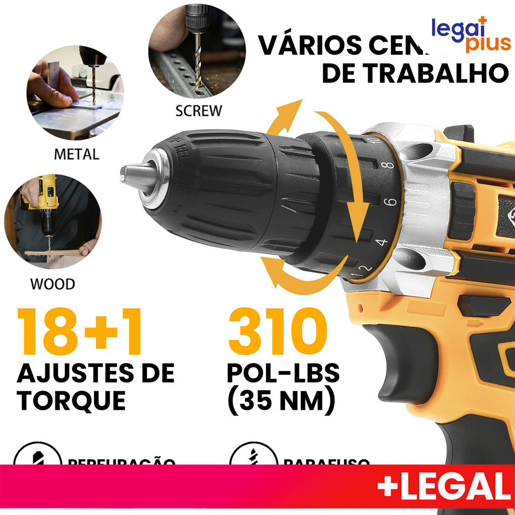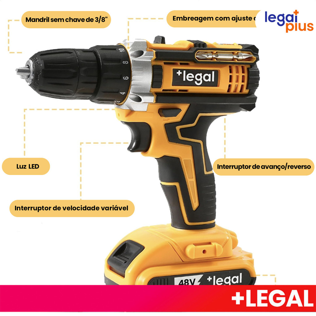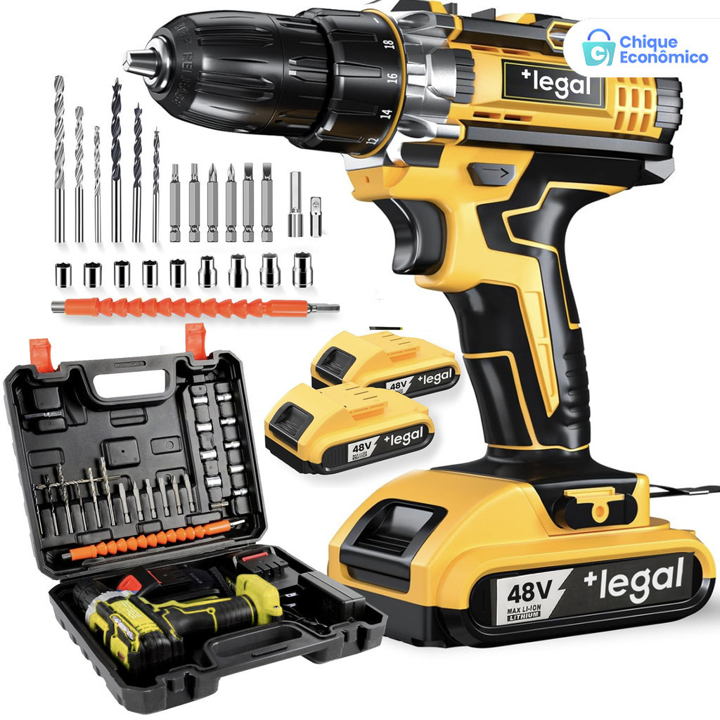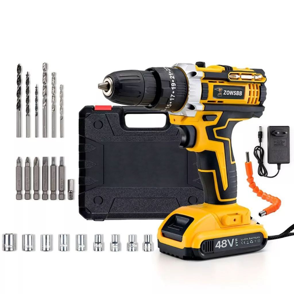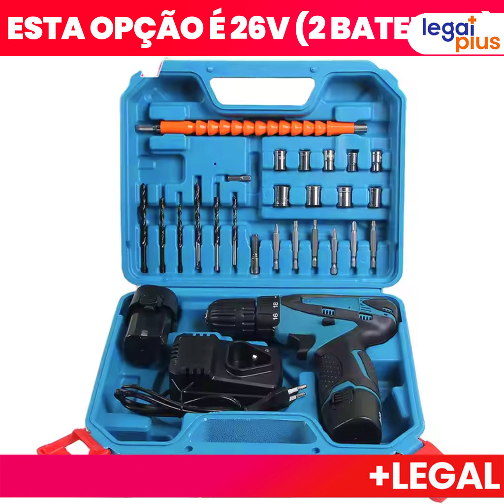 Parafusadeira de alta potência 26V/48V, caixa de armazenamento e mais de 30 acessórios (uso profissional)