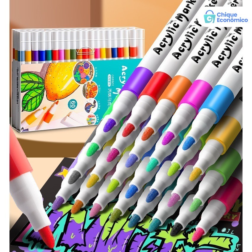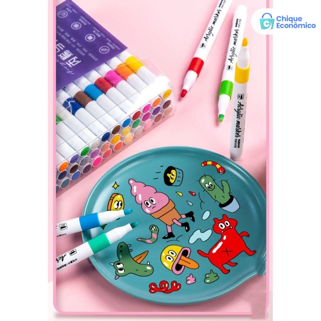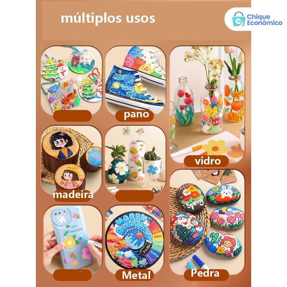 Kit 12/24/36/48 Cores Caneta Acrílica Multisuperfície: Madeira, Tecido, Tênis