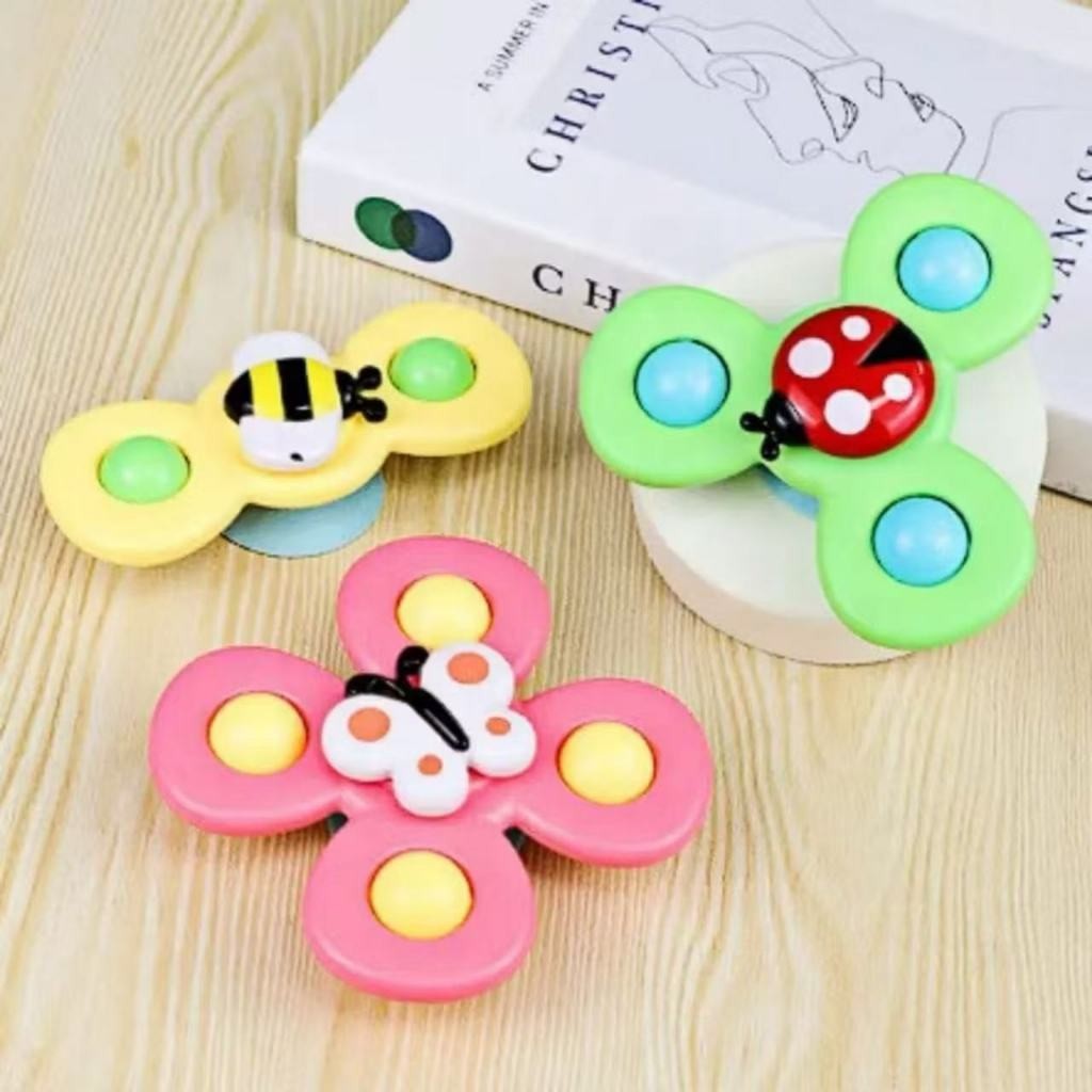 Kit 3 Brinquedo Sensorial para Bebê - Ventosa Adesiva Gira Spinner Atividade Educativa