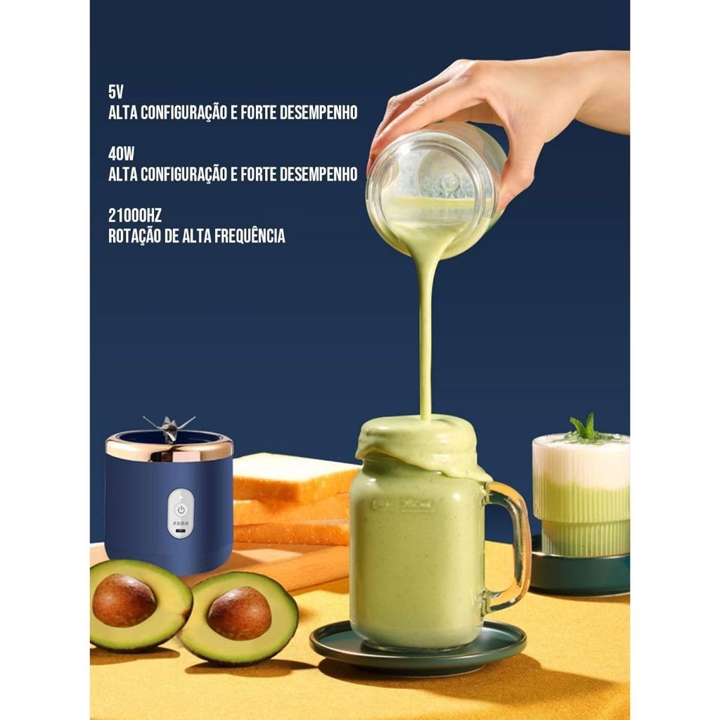 Mini Liquidificador Portátil Elétrico 400ML com 6 Lâminas, Espremedor de Suco, Alimentos, Misturador de Leite Smoothie