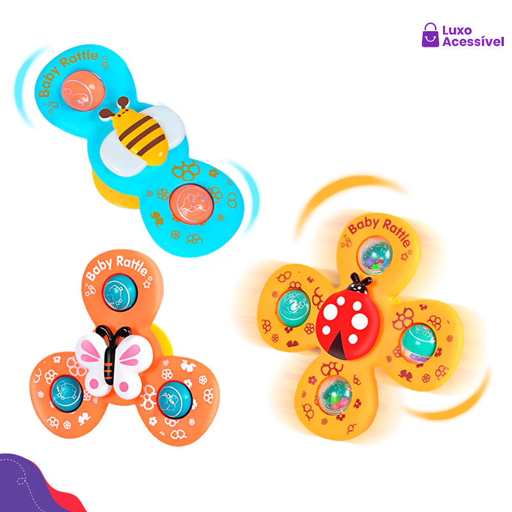 Kit 3 Brinquedos Sensoriais para Bebê - Ventosa Gira Spinner Estimulação Visual e Tátil