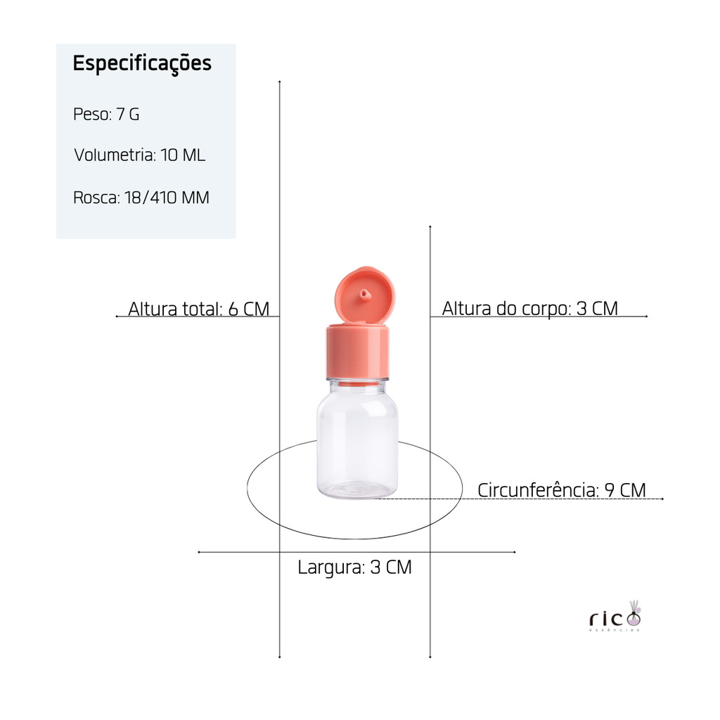 10 ou 25 Frascos Pet 10ml Natural Com Tampa Flip Top Mini Plástico