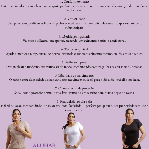 Kit Com 2 Blusa de Manga Curta Segunda Pele,