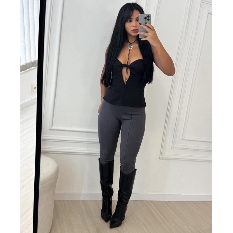 Calça Feminina Montaria Zhara Skinny Legging Cintura Alta Básica Casual Moda Outono Inverno