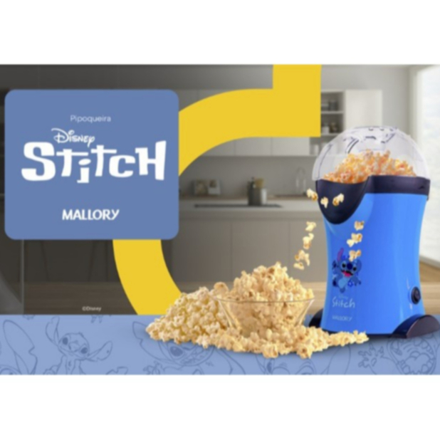 Pipoqueira Elétrica Stitch Disney Sem Óleo 1200W Azul Mallory