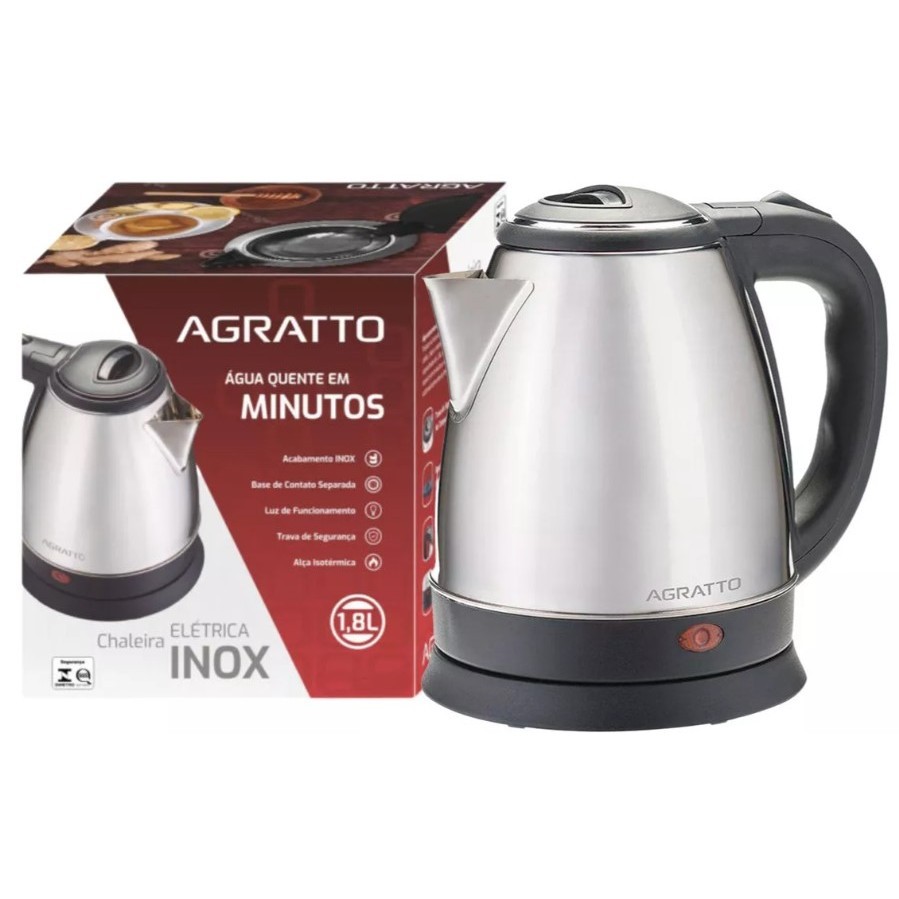 Chaleira Elétrica Agratto Inox Termica Automático 1,8 Litros Rápida Jarra 1000W