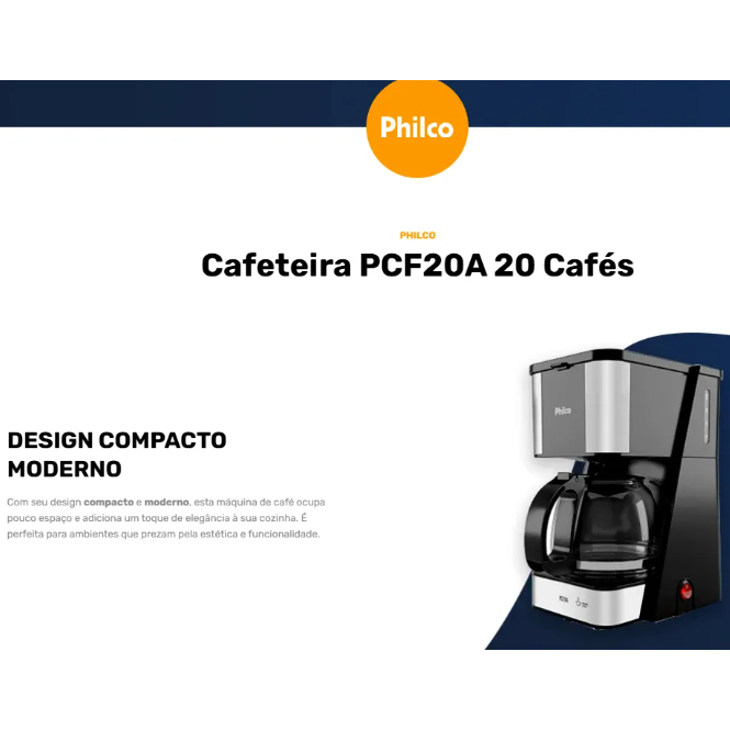 Cafeteira Philco PCF20A 720ml 20 Xicaras Cafezinhos Bar 650W Inox