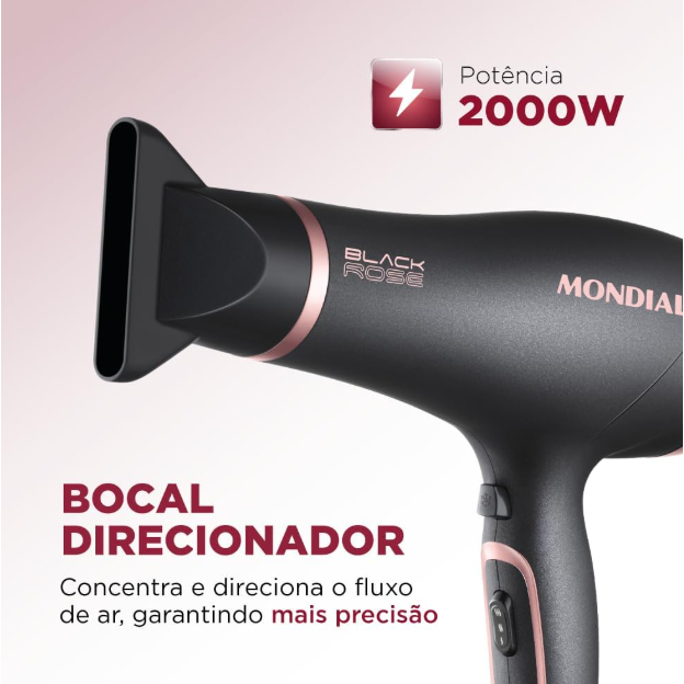 Secador de Cabelos Mondial SC-37 Black Rose 220V 2.000W Utensílio Capilar