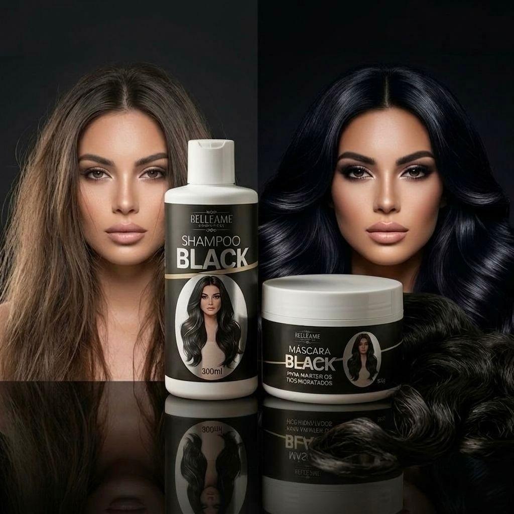 Kit Shampoo + Máscara Tonalizante Preto Intenso + BRINDE. Sem Amônia - Resultado 100% Natural ( EMBALAGEM NOVA )