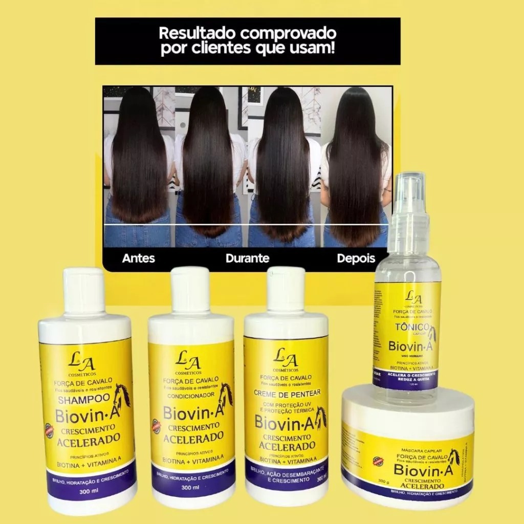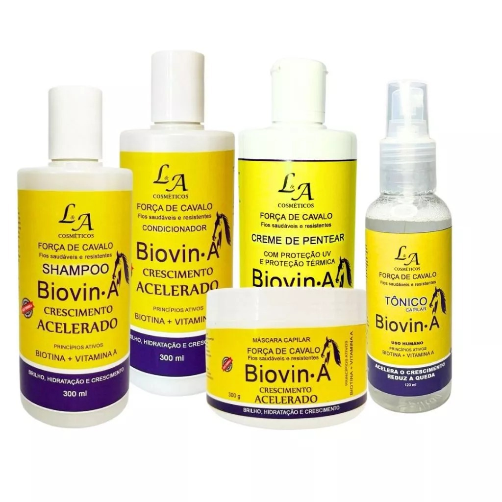 Kit Crescimento Capilar Completo Biovin-A Força de Cavalo + Tônico Crescimento e Creme p/ pentear L&A