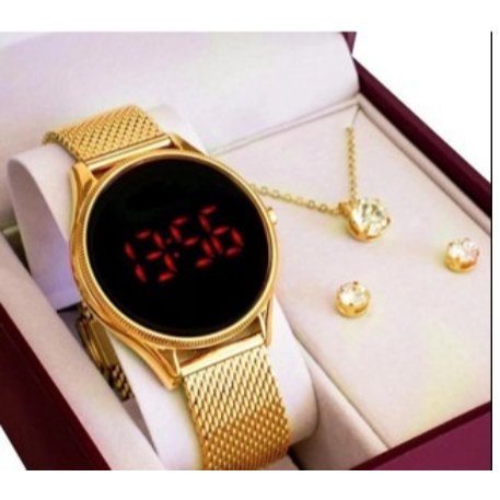 Relogio Feminino Digital Rose Magnetica C/ Brinco e corrente 3242