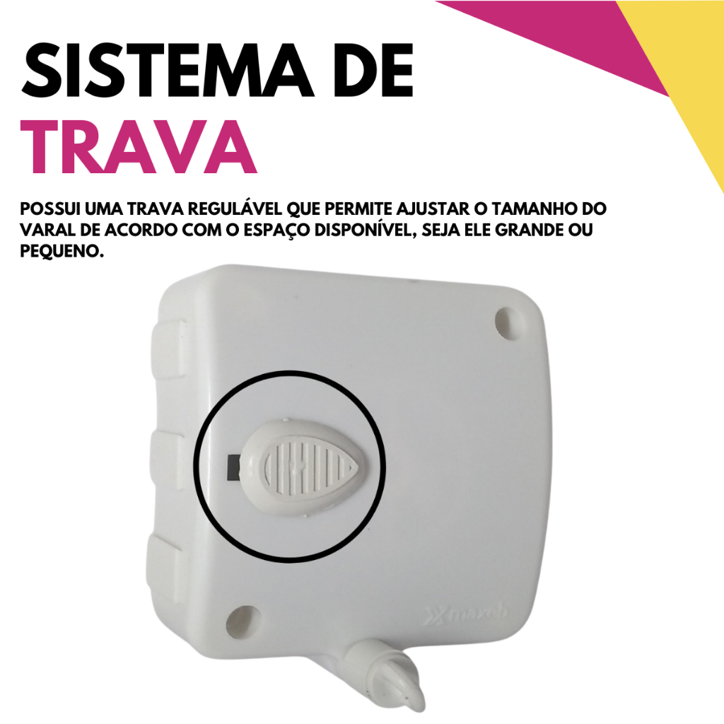 Varal Modular De Parede Recolhe 6m Com Trava Suporta 6kg 3 Modulos Retratil Maxeb Envio Imediato