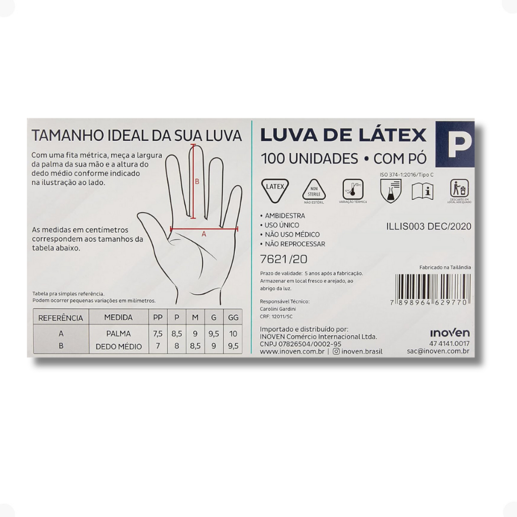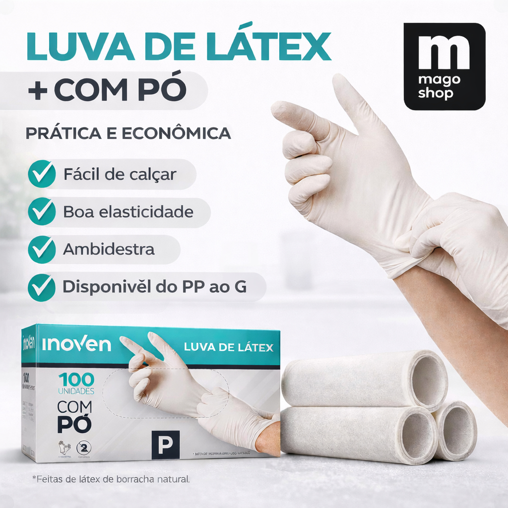 Luva Látex Com Pó Inoven 100 Unidades Descartável
