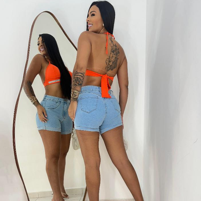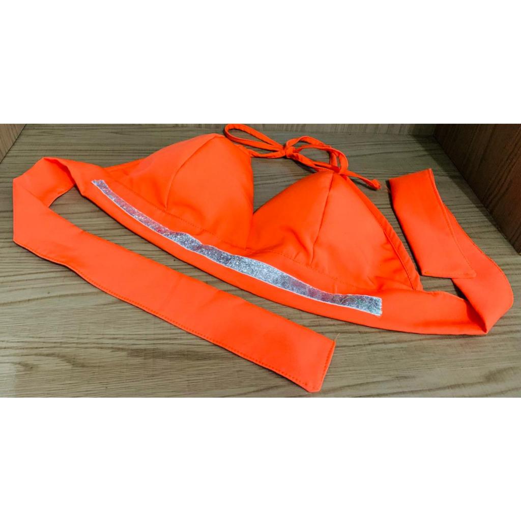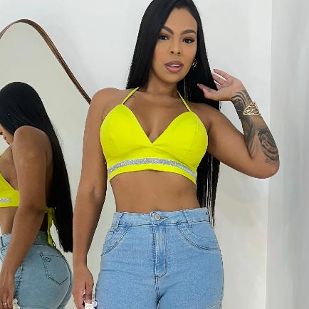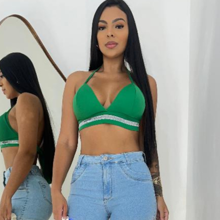 Top Cropped Alfaiataria strass com amarrações no pescoço e costas top Croppetbrilhante .