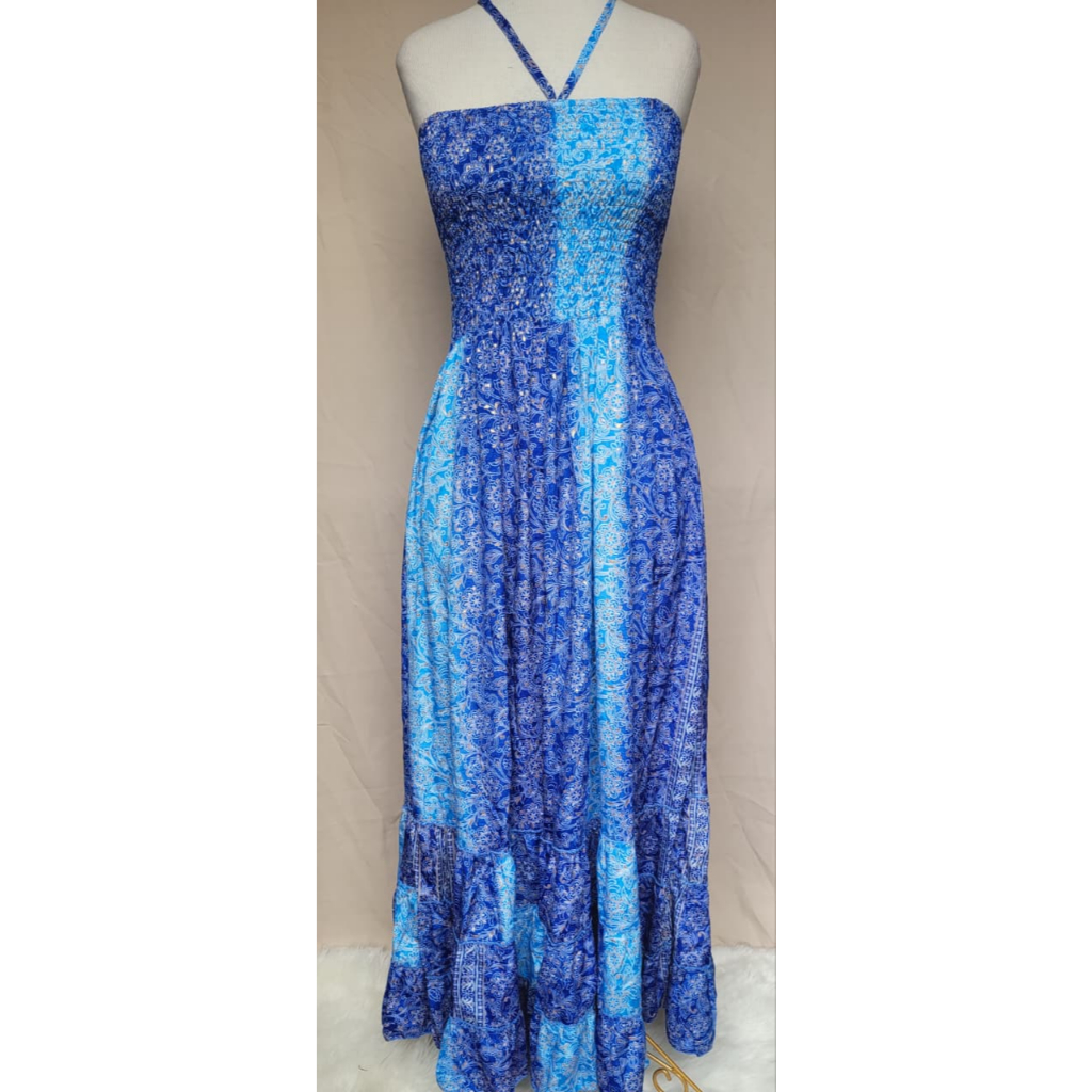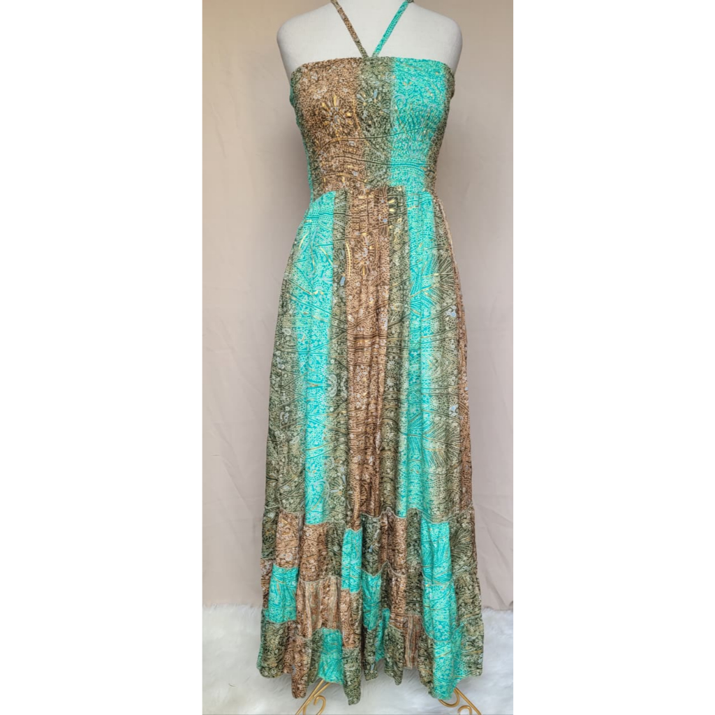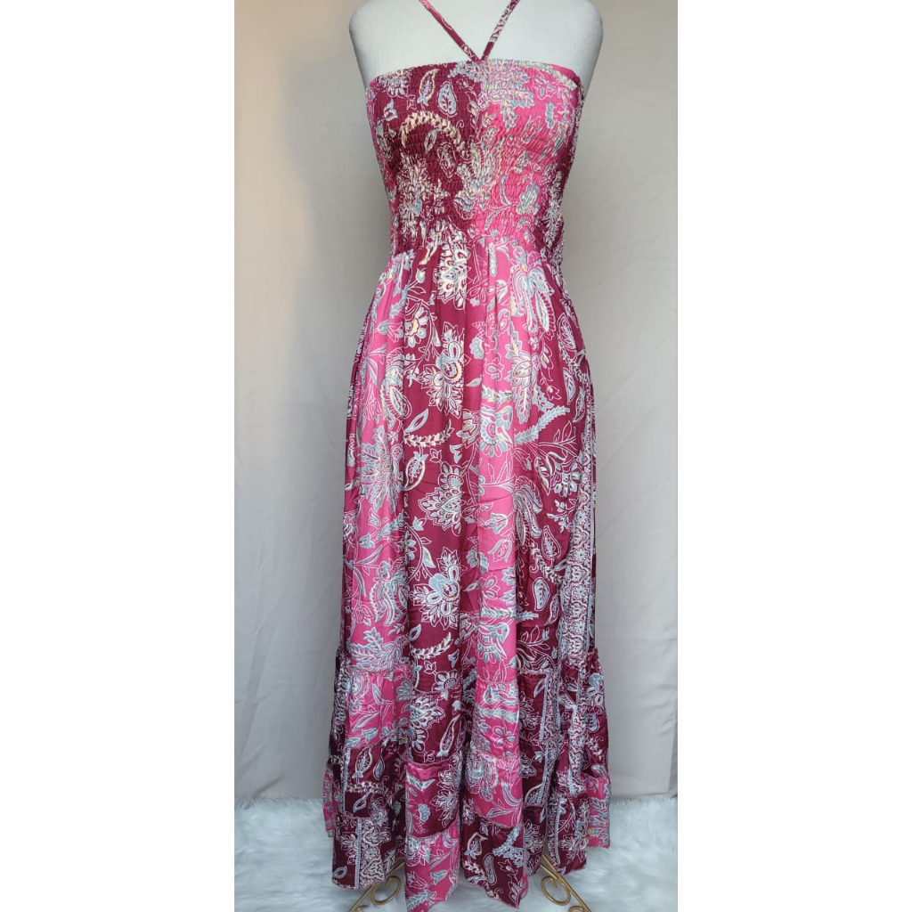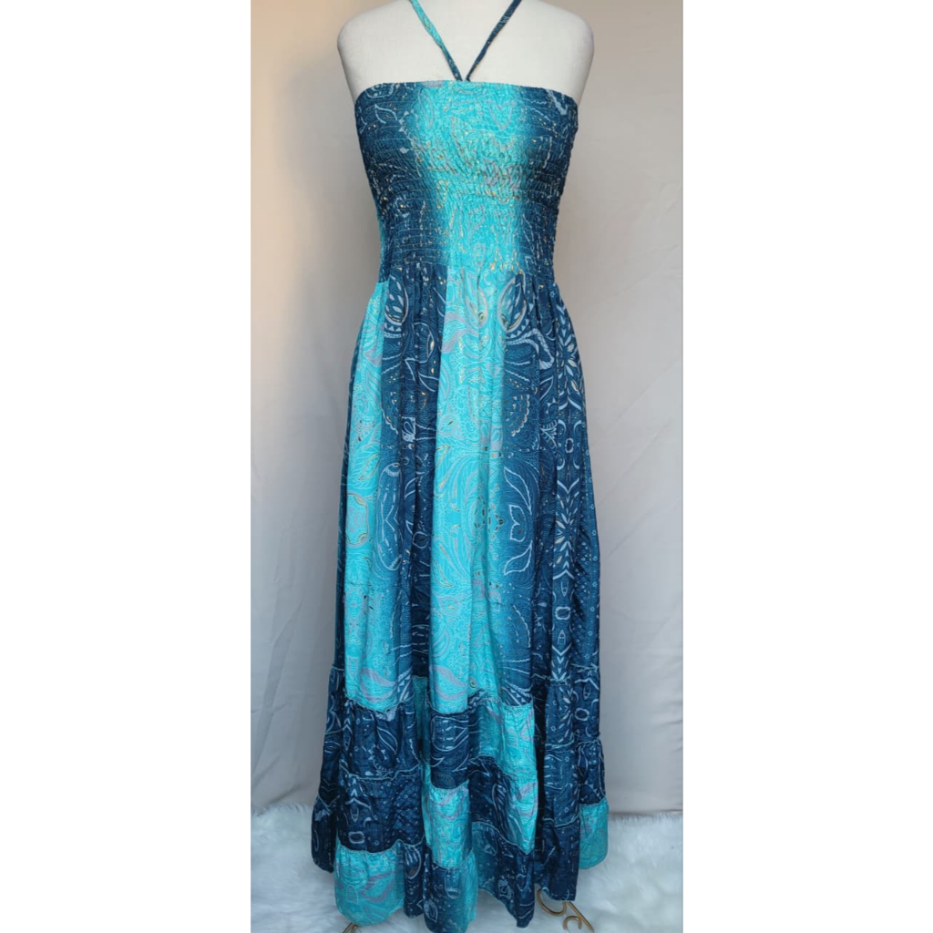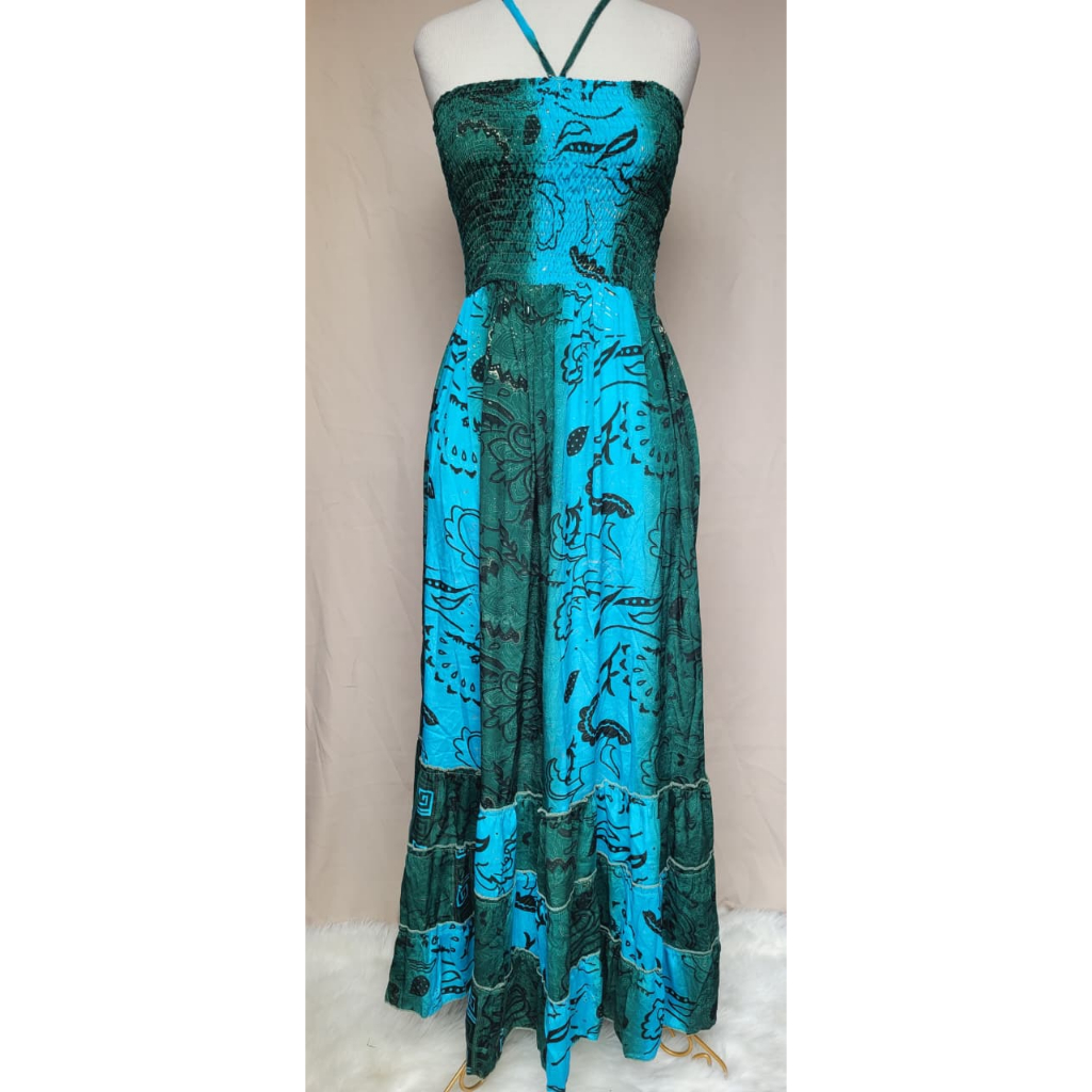Vestido feminino Com lastex multiforma alça ou tomara que caia, estampado tecido seda