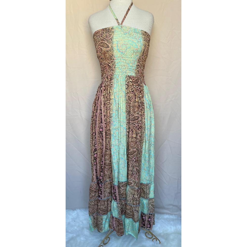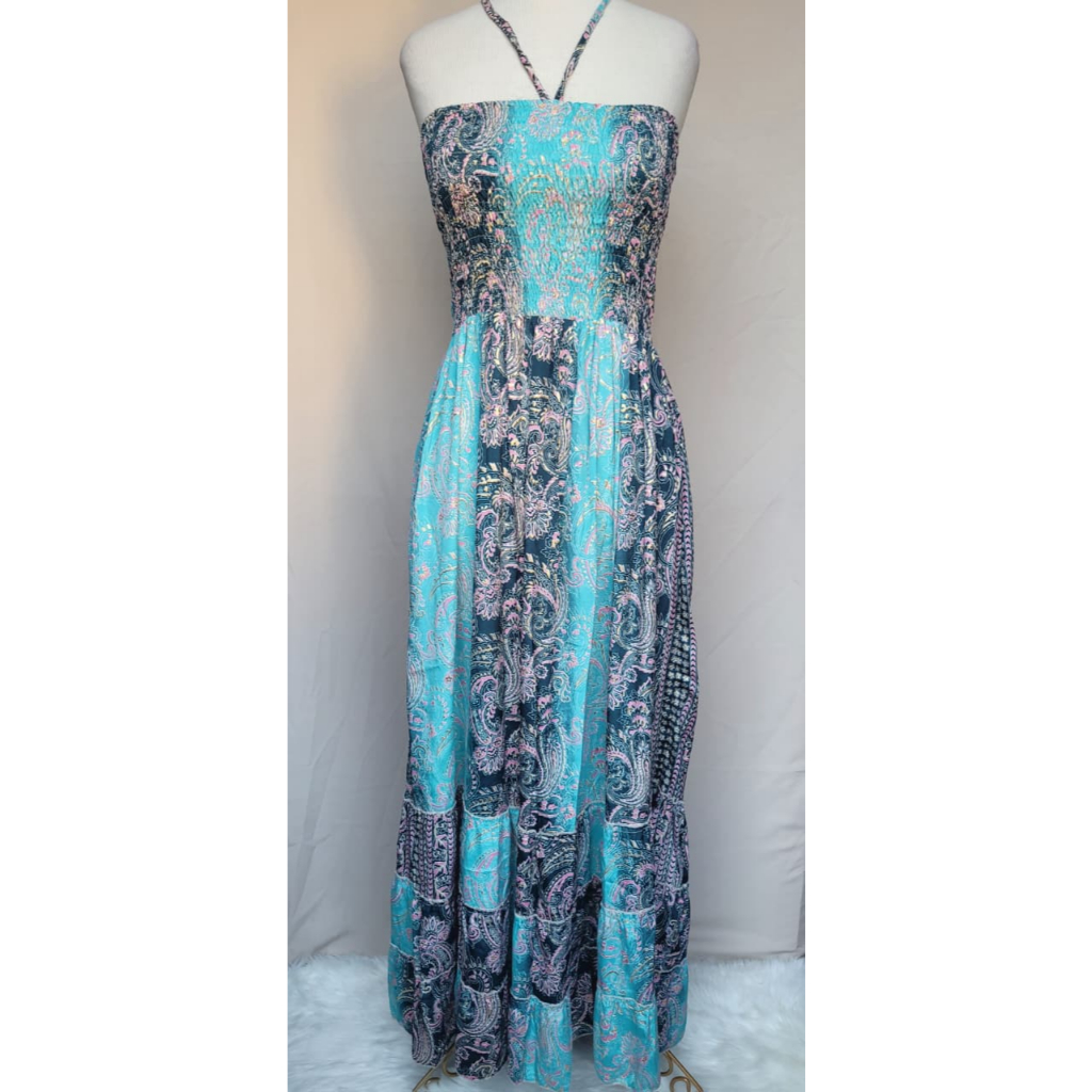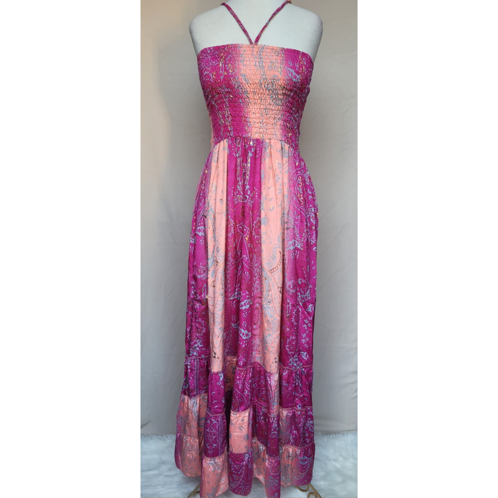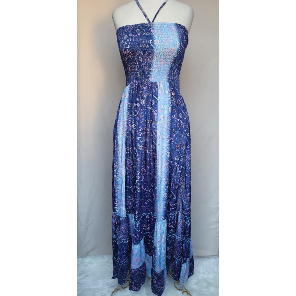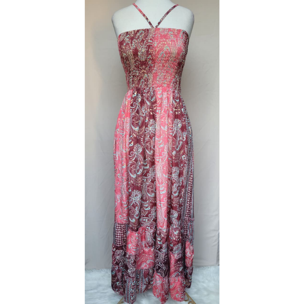Vestido feminino Com lastex multiforma alça ou tomara que caia, estampado tecido seda