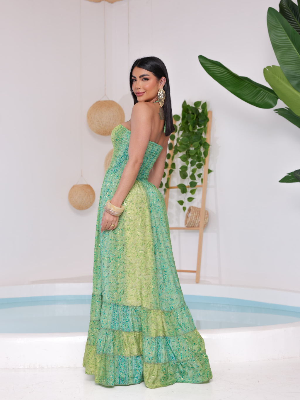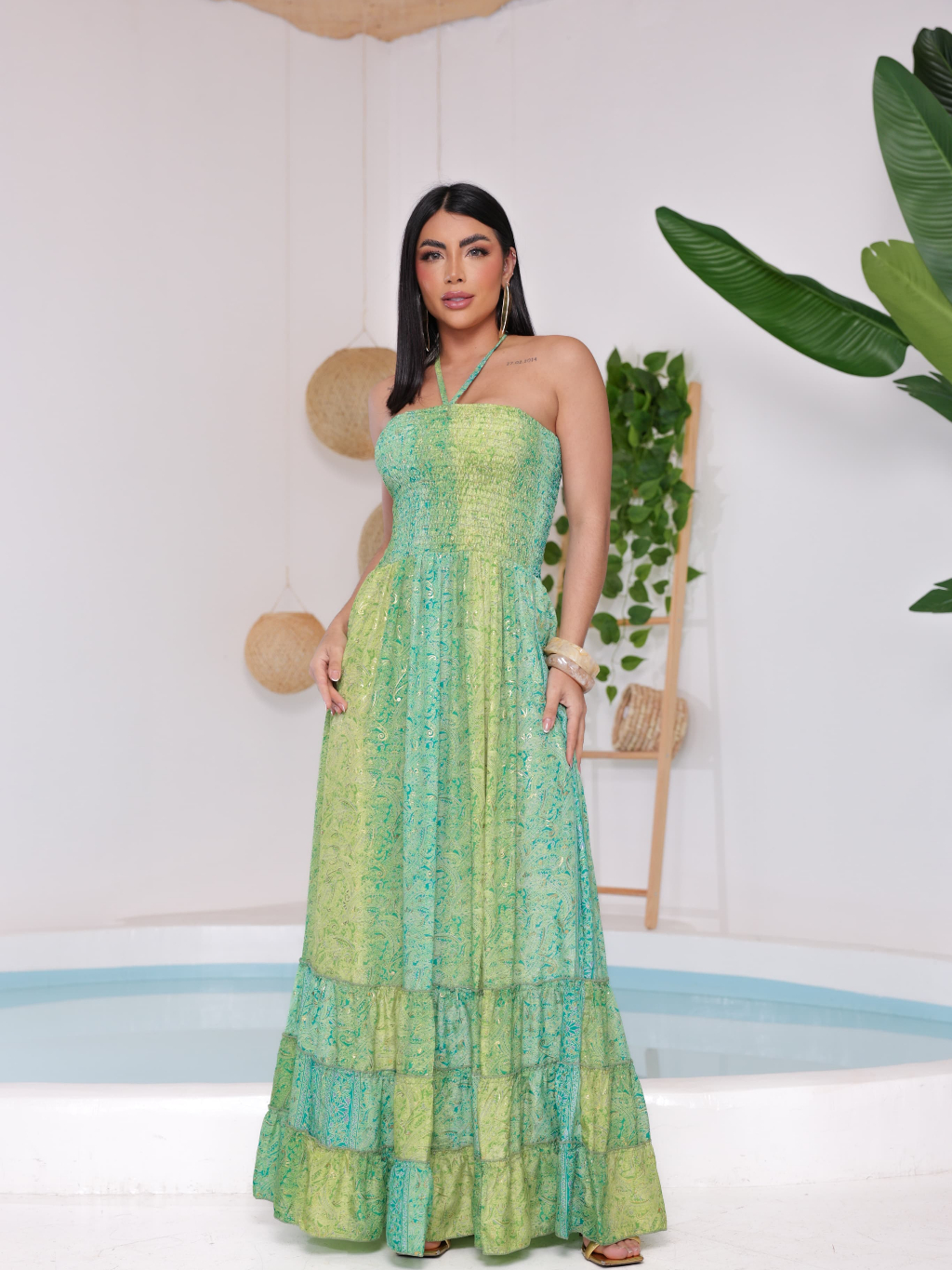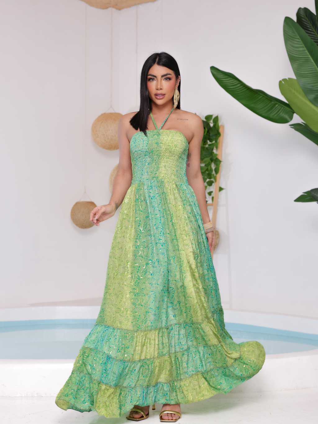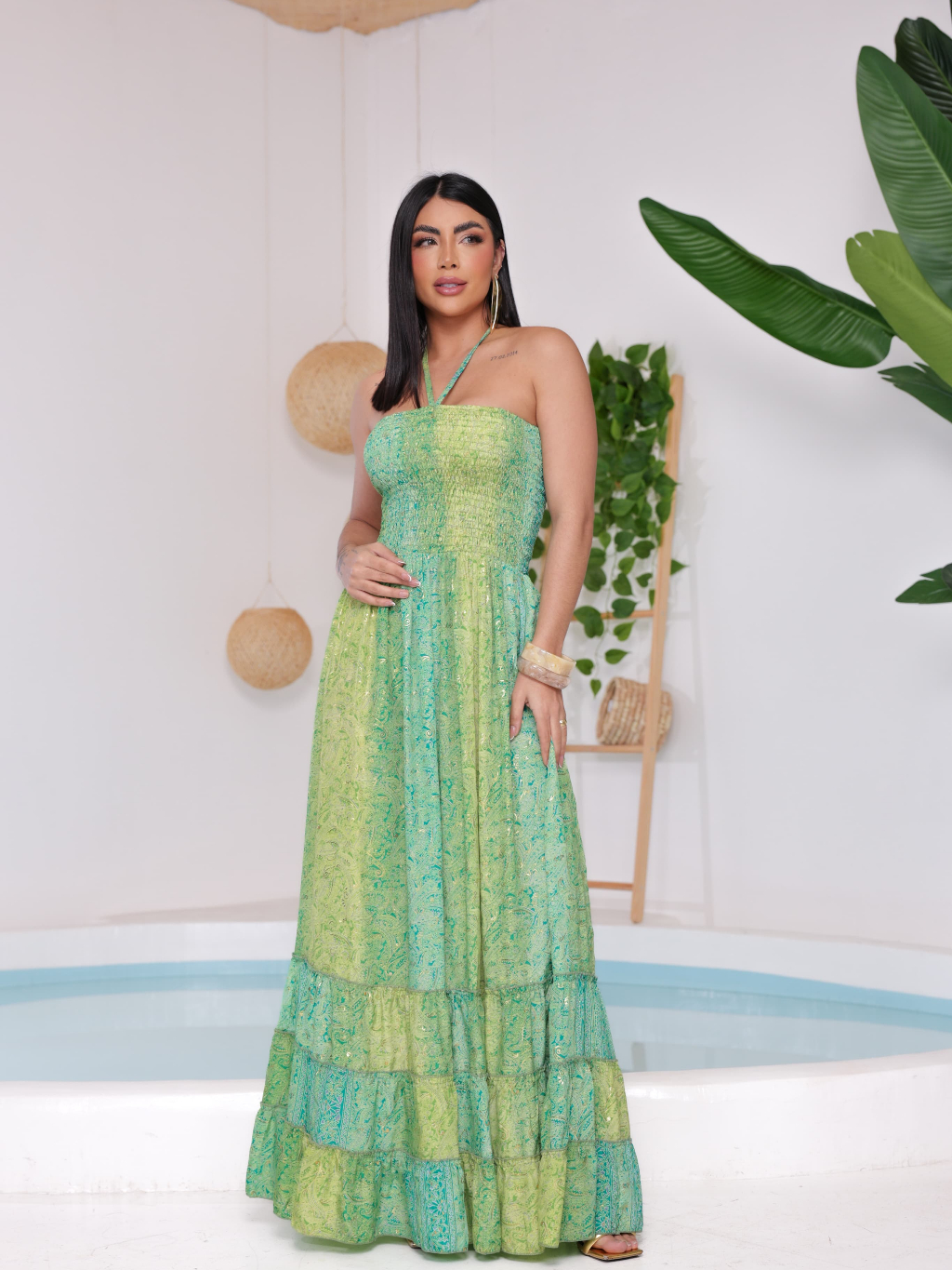 Vestido feminino Com lastex multiforma alça ou tomara que caia, estampado tecido seda