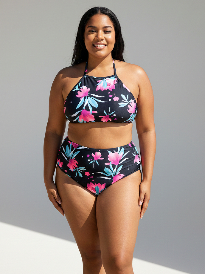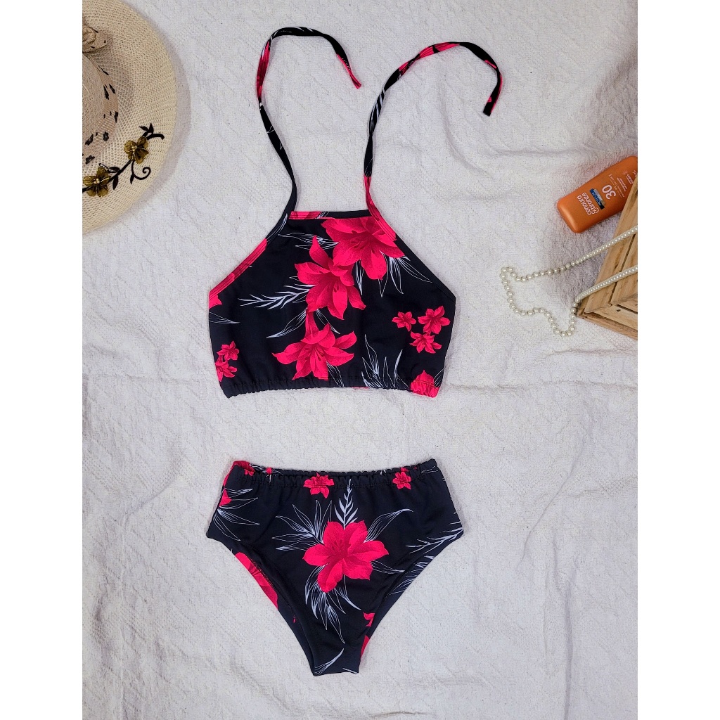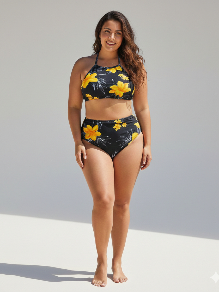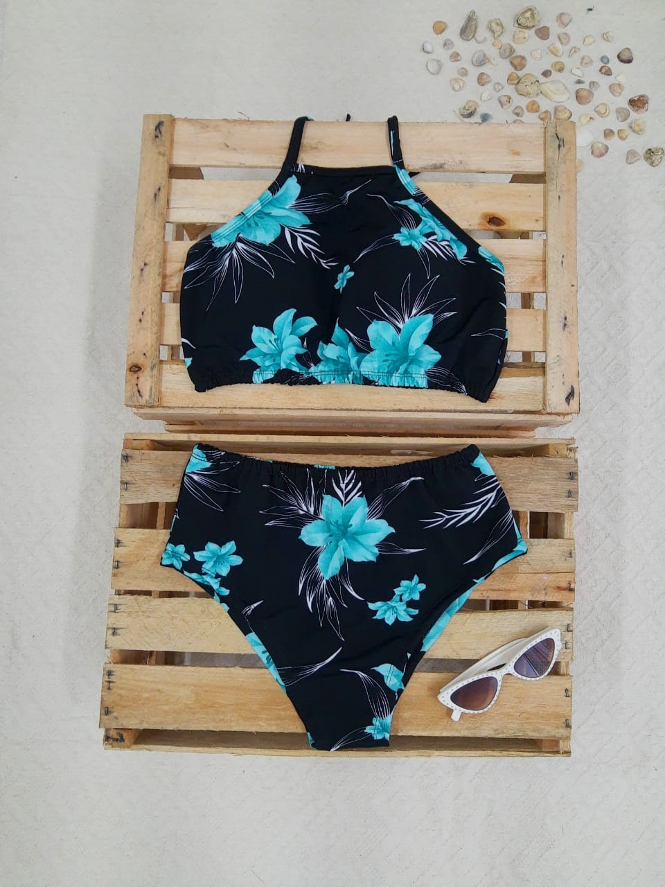 Biquini Sunkini Feminino Plus Size Com Bojo Cintura Média Alta Estampas Florais