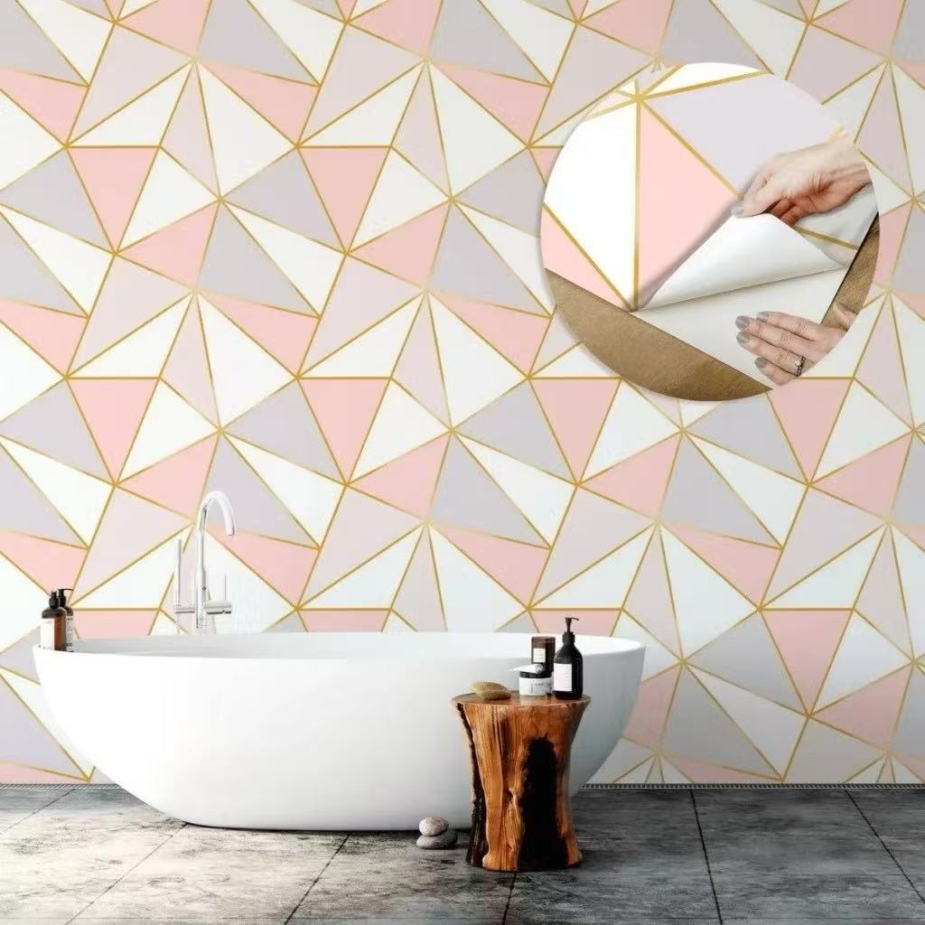Papel De Parede Adesivo Losango Rosa 5mx45cm Impermeável Lavável Quarto Sala