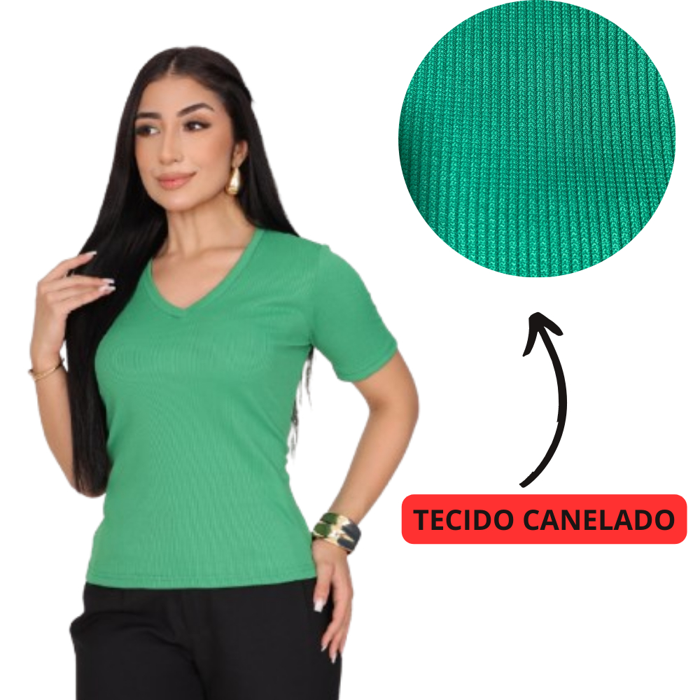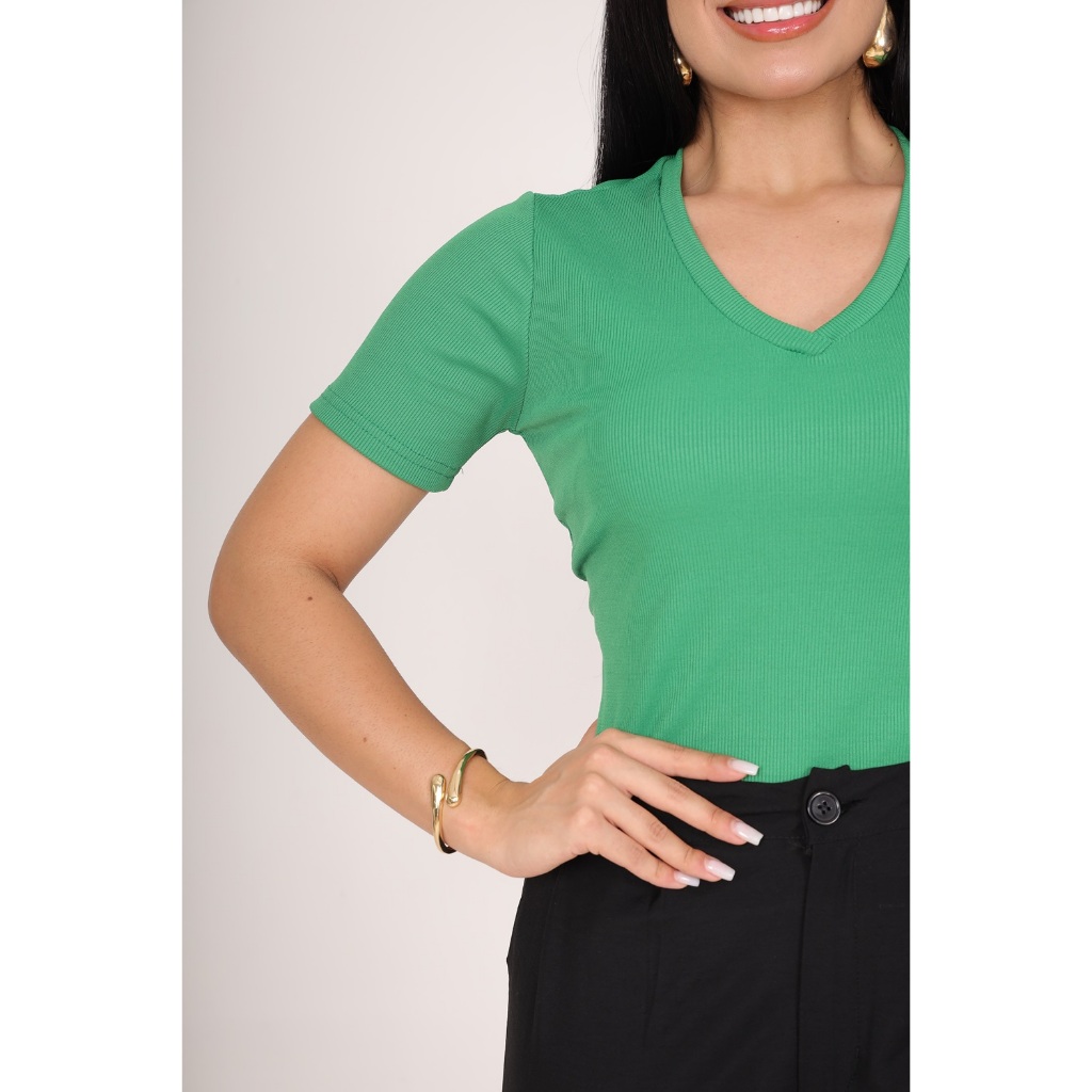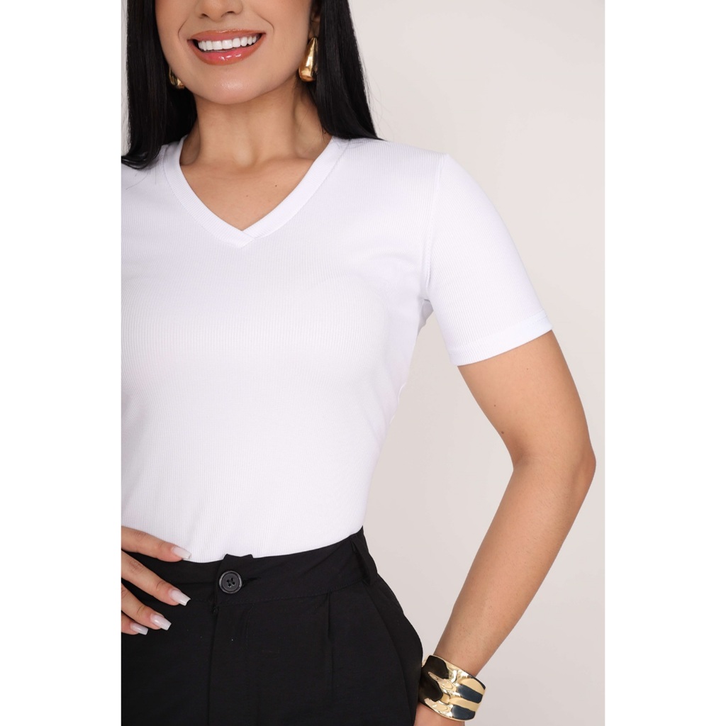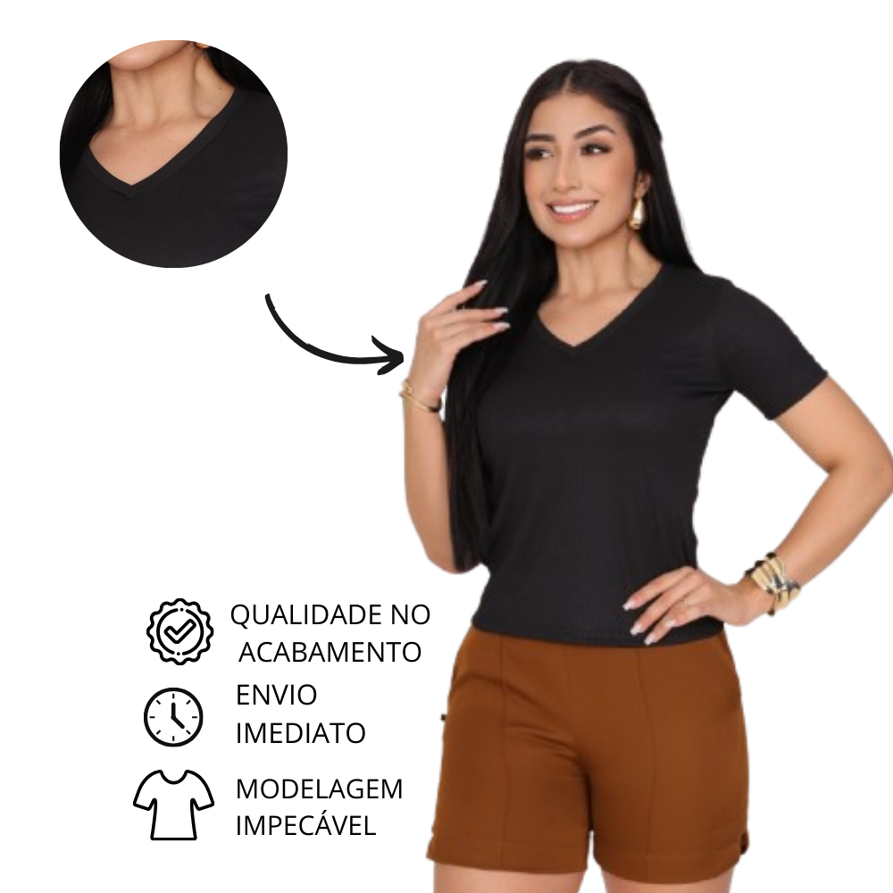Blusa basica Gola V Casual Tshirt Basica Canelada Feminina Blusinha Manga Curta