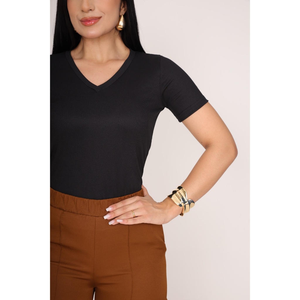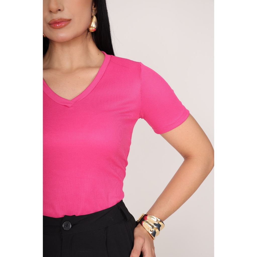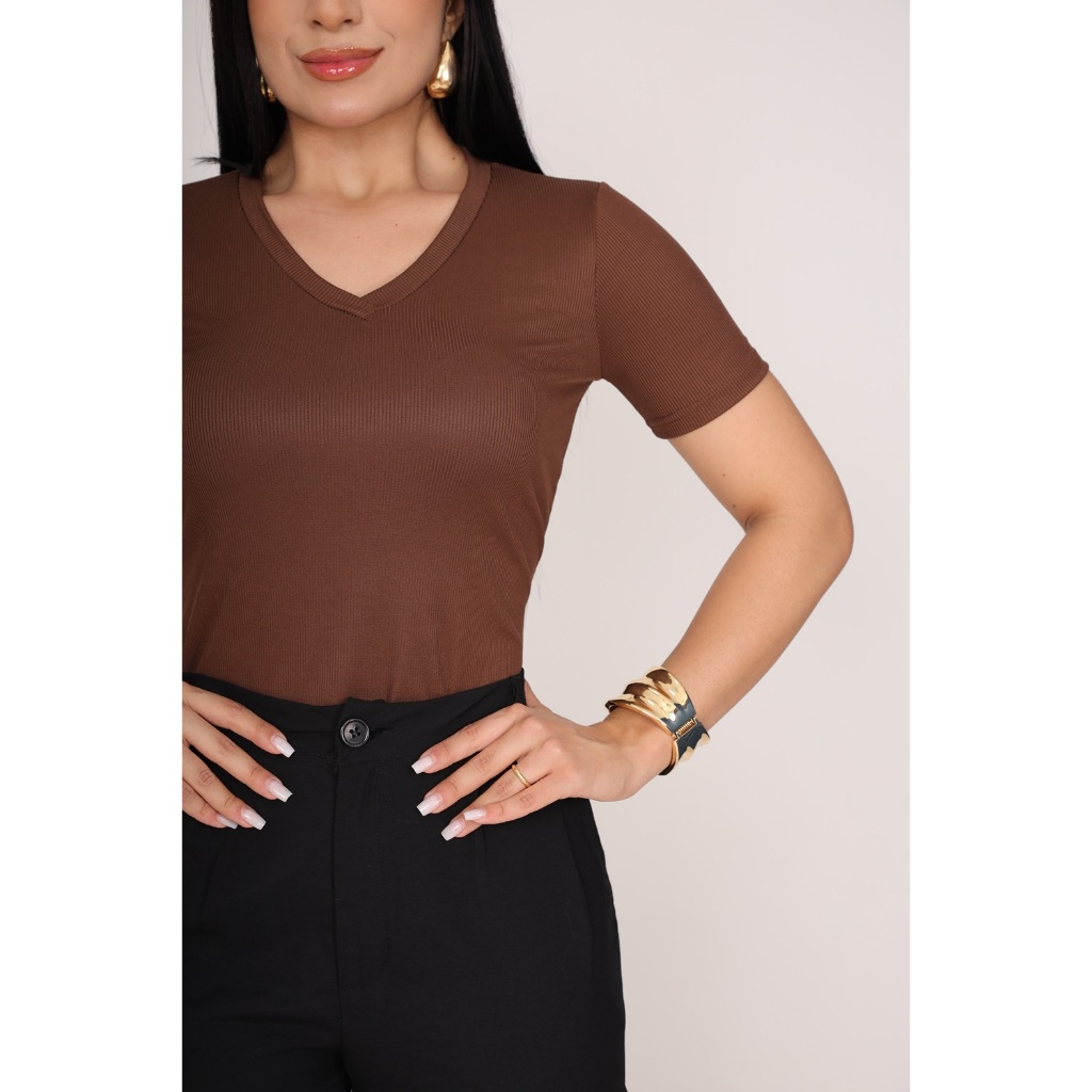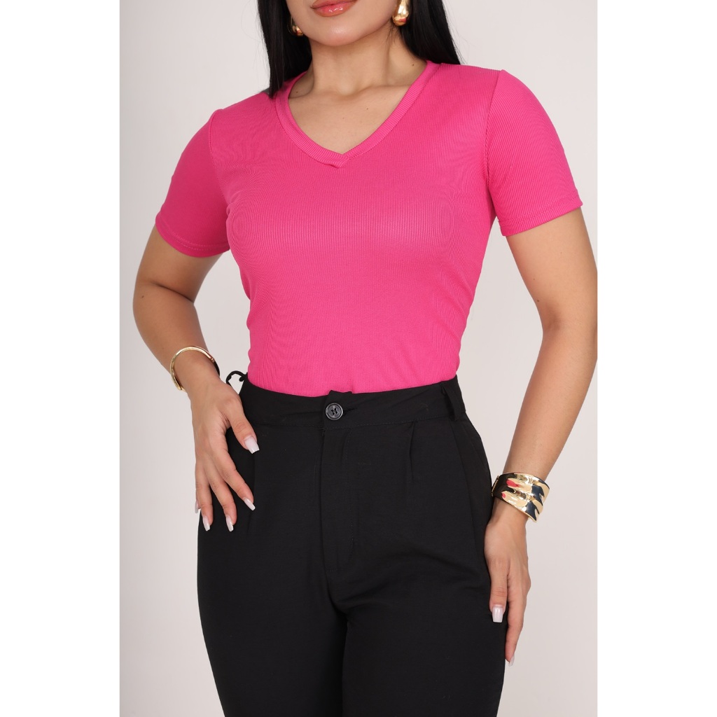 Blusa basica Gola V Casual Tshirt Basica Canelada Feminina Blusinha Manga Curta