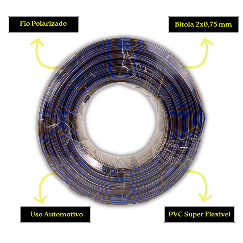 Fio Paralelo Cristal Bicolor 2 X 0,75mm Rolo 100 Metros P/ Som Alto Falantes