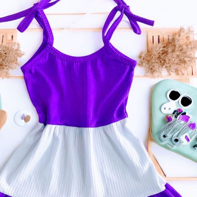 Vestido menina infantil Roxo e Branco alcinha de amarrar