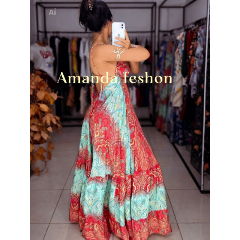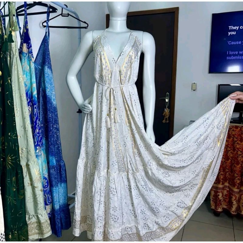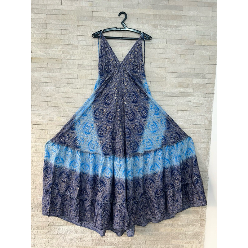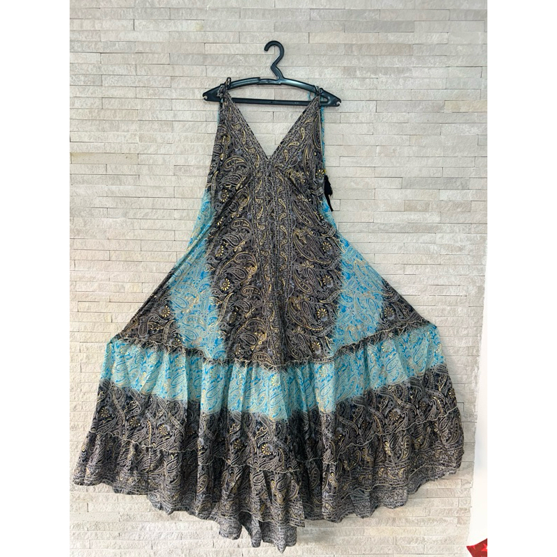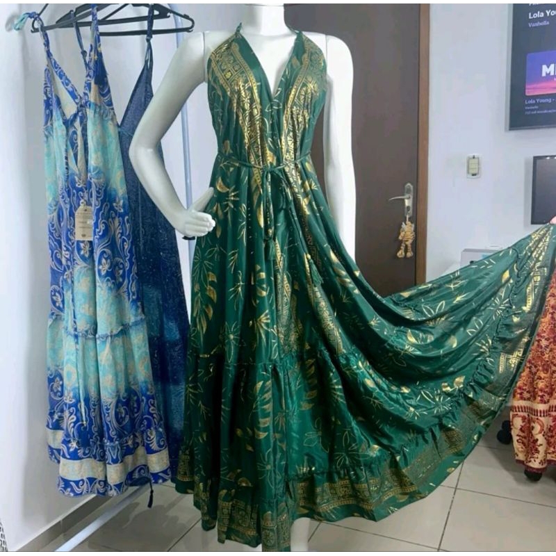 Vestido Indiano Importado de Seda - Tons de Azul | Tam. único