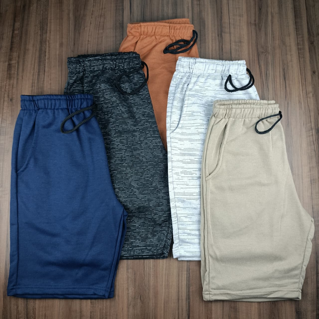 Kit Sortido 5 Bermudas Moletom Premium Masculina, Com Bolsos Laterais - Moda Casual e Esportiva
