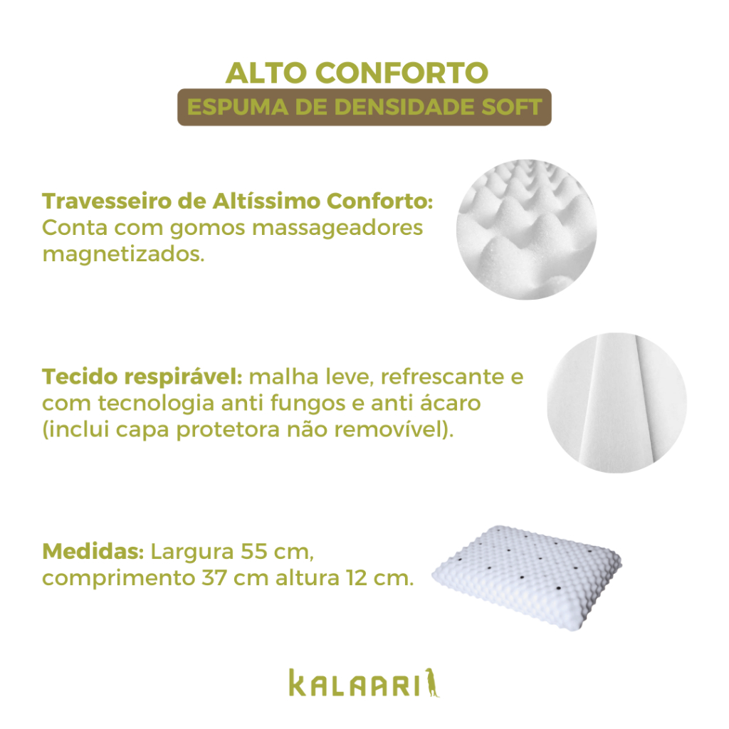 KIT 2 Travesseiros Magnético ALTO ORTOPEDICO Massageador Confortável Infravermelho Terapeutico Luxo