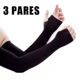 KIT 3 Par Manguito mangote com Dedo Proteção solar UV50+ Corrida Fitness Academia Unissex