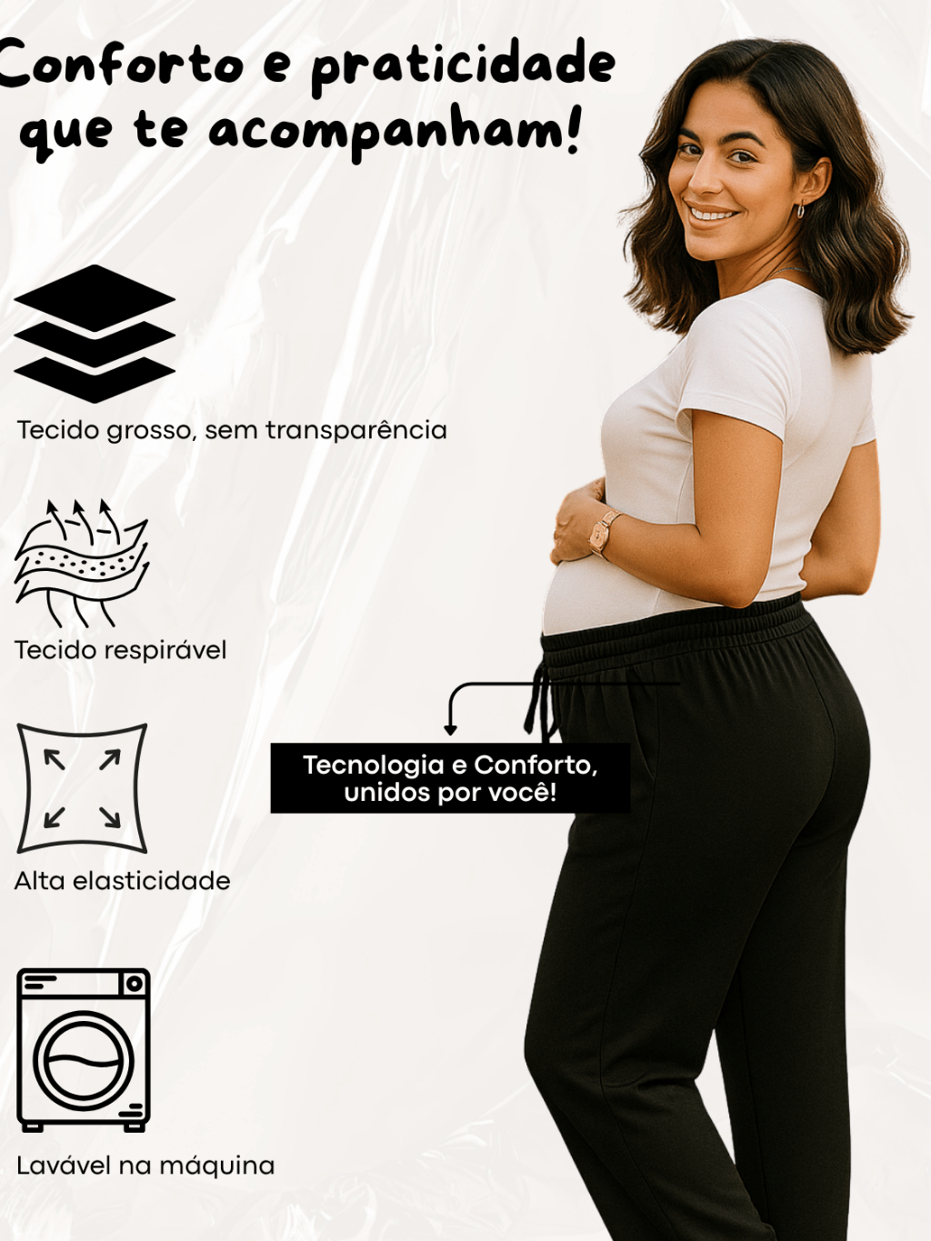 Calça Gestante Maternidade Duna Elastico Confortavel Gravidez Pantalona Gravida Leve M ao G1