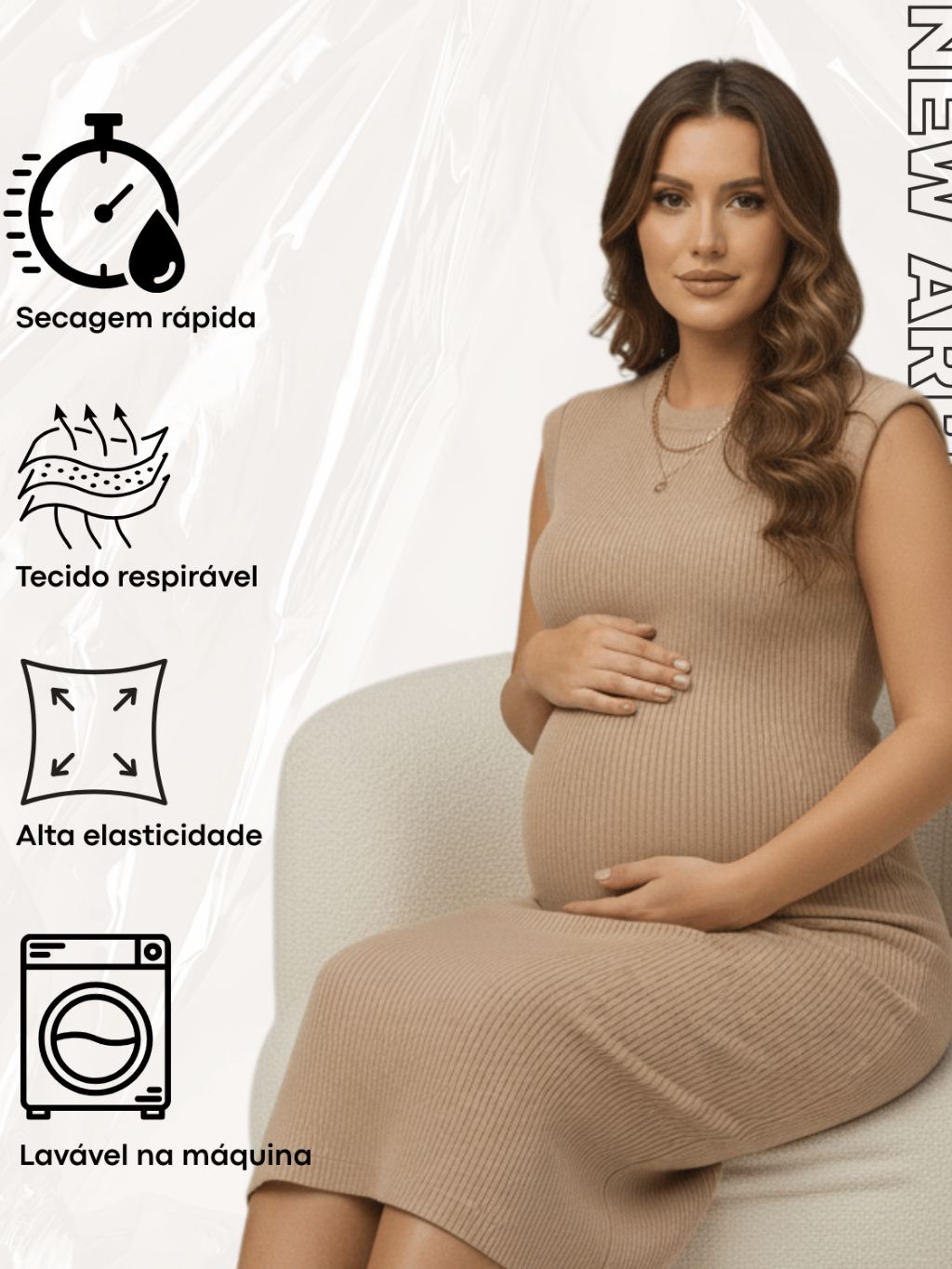 Vestido Midi Gestante Muscle Tee Canelado Gravidez Regata Elegante Confortavel Casual Festa M Ao G1