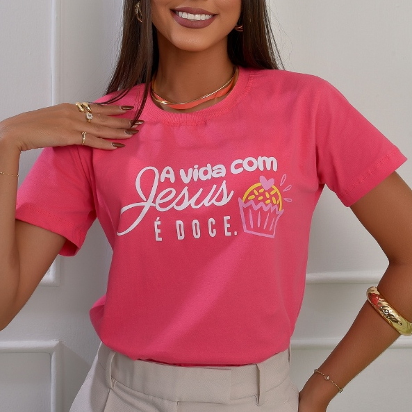 Blusa Tshirt Feminina Moda Evangelica Algodão Manga Curta
