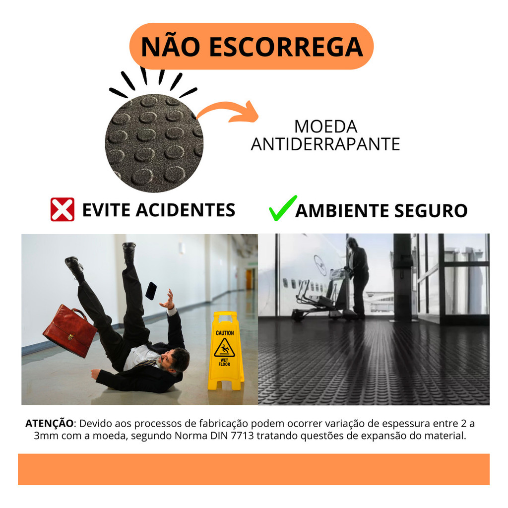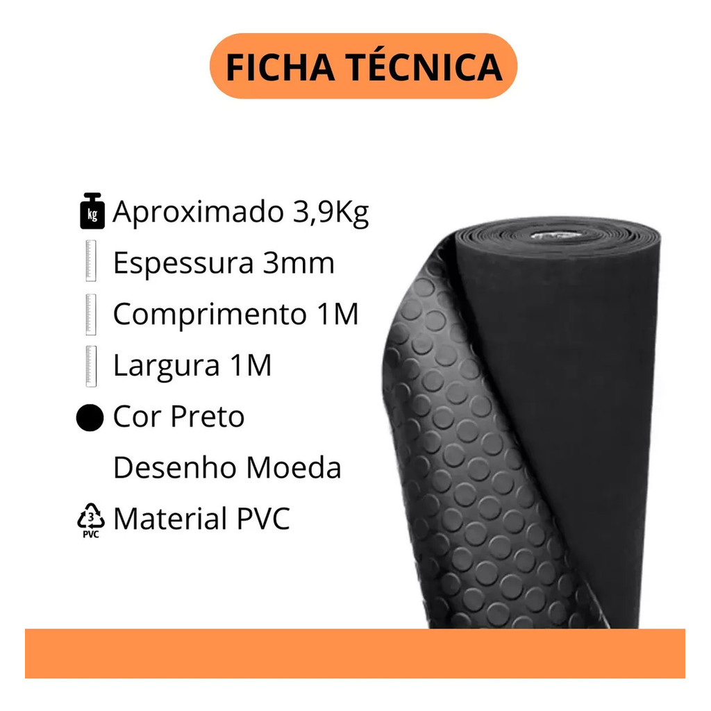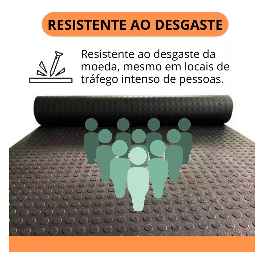 1m Piso Emborrachado Moeda Suporta Impacto 1m x 1m - 3mm