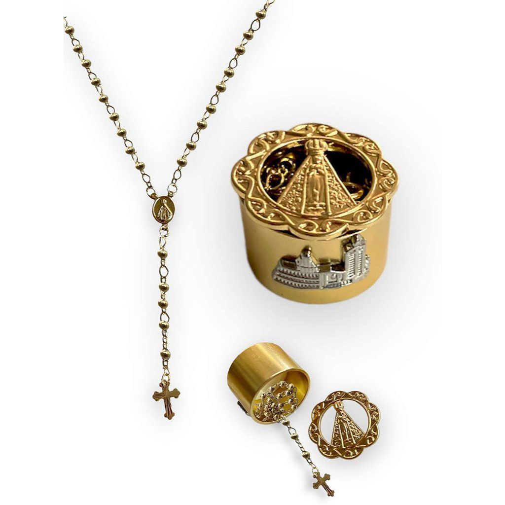 Terço Pescoço Folheado A Ouro Com Porta Terço Delicado